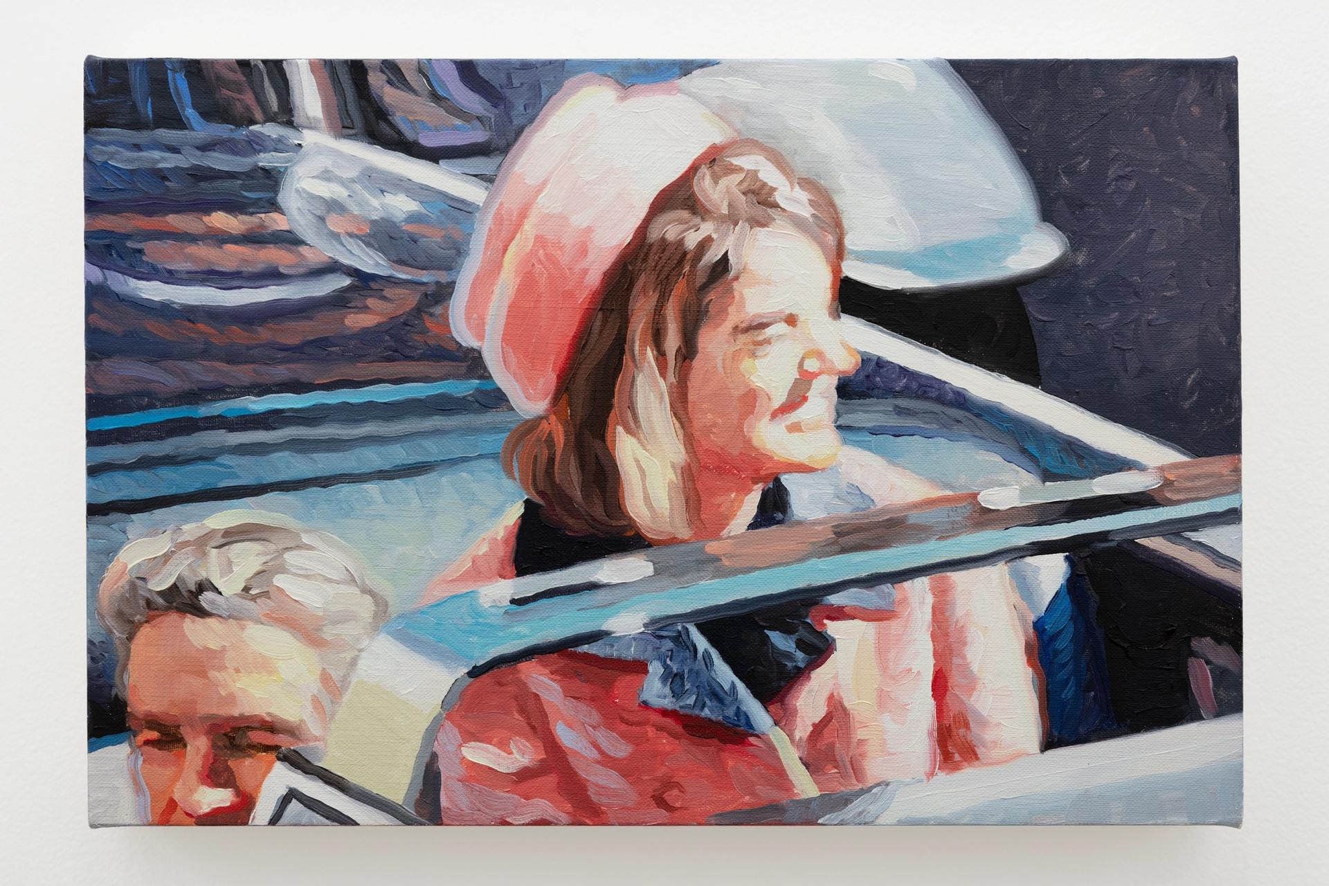 For Kasmin’s Nick Olney, there were multiple highlights to opening day, not the least of which was introducing new artists to new collectors—and being able to do so in person. “People were just excited to be here. Especially since it was in the city. There’s a feeling that you’re threaded right into Chelsea, you’re part and parcel with all the galleries. People don’t mind the timed entry or the two-hour time limit because they can explore the gallery district before or afterwards,” Olney says. Kasmin sold 12 works on opening day priced between $8,000–$350,000 by artists including Cynthia Daignault, Liam Everett and Jan-Ole Schiemann. Daignault’s oil on linen work, 26 Seconds (2021), nine panels at 10 x 15 inches each, showing a cinematic view of the JFK assassination, sold for $48,000.