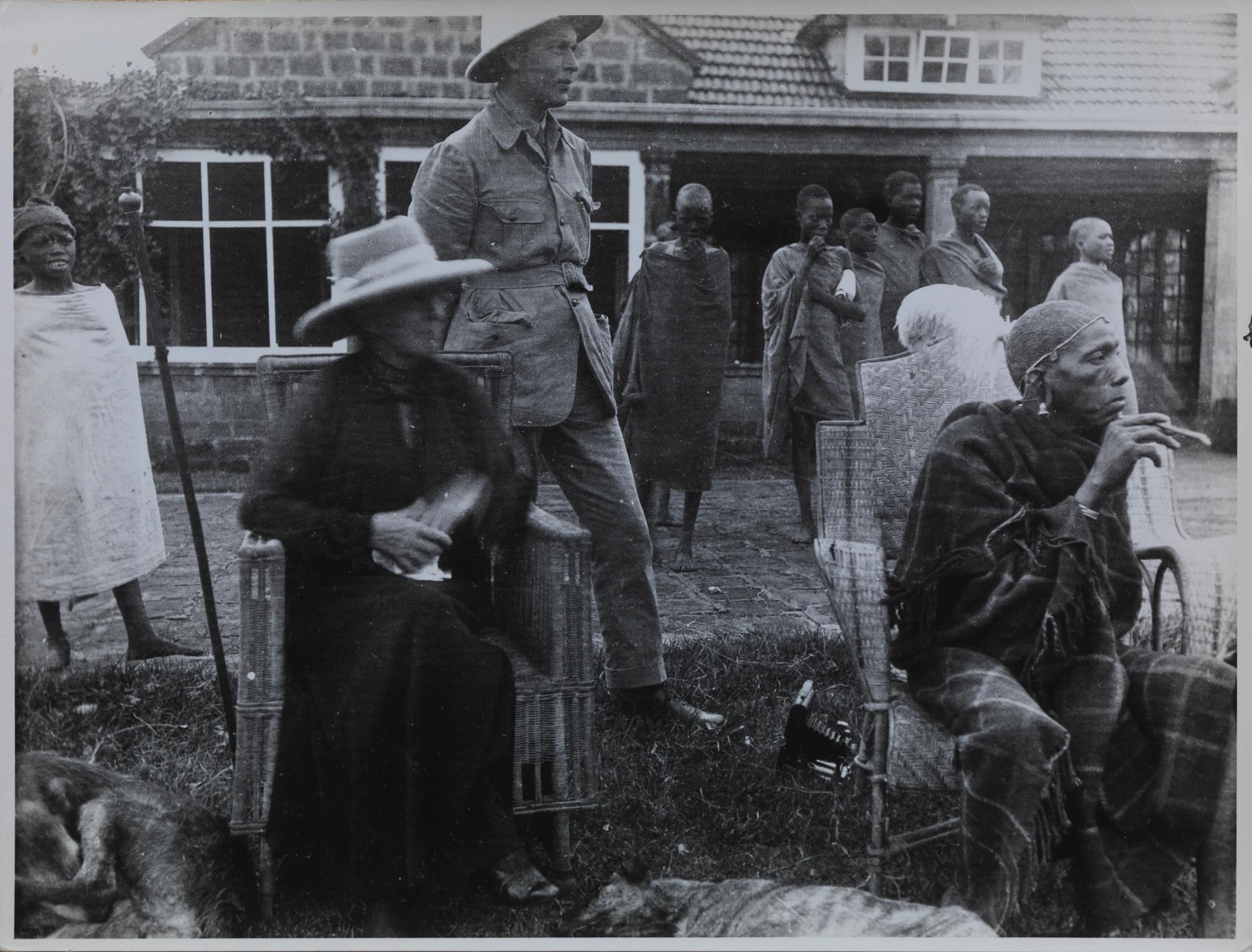 The vintage prints, from the early 1920s, were mostly taken by Blixen’s younger brother, Thomas Dinesen, a veteran of the First World War and recipient of the VC. They feature informal shots of Blixen at home on her coffee farm in the foothills south-west of Nairobi—seen with her dogs, on horseback, taking tea—but also staged, awkward pictures of her black servants and local natives lined up for the camera, images fashioned by colonialist attitudes.