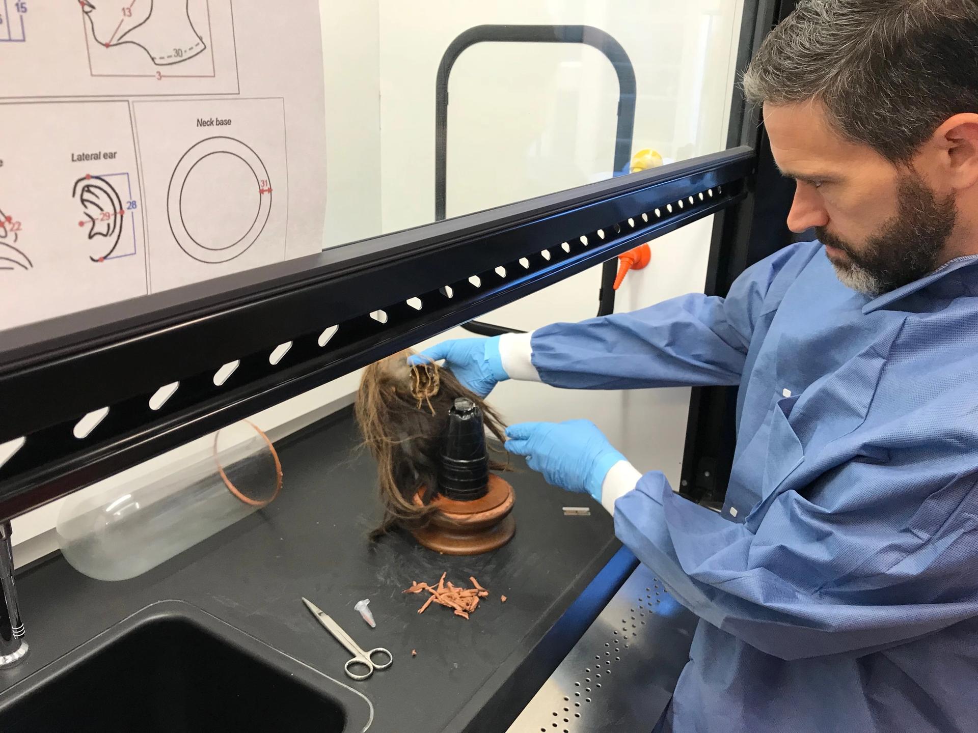 Craig Byron, a professor of biology at Mercer University, working on the tsantsa Photo: Adam Kiefer