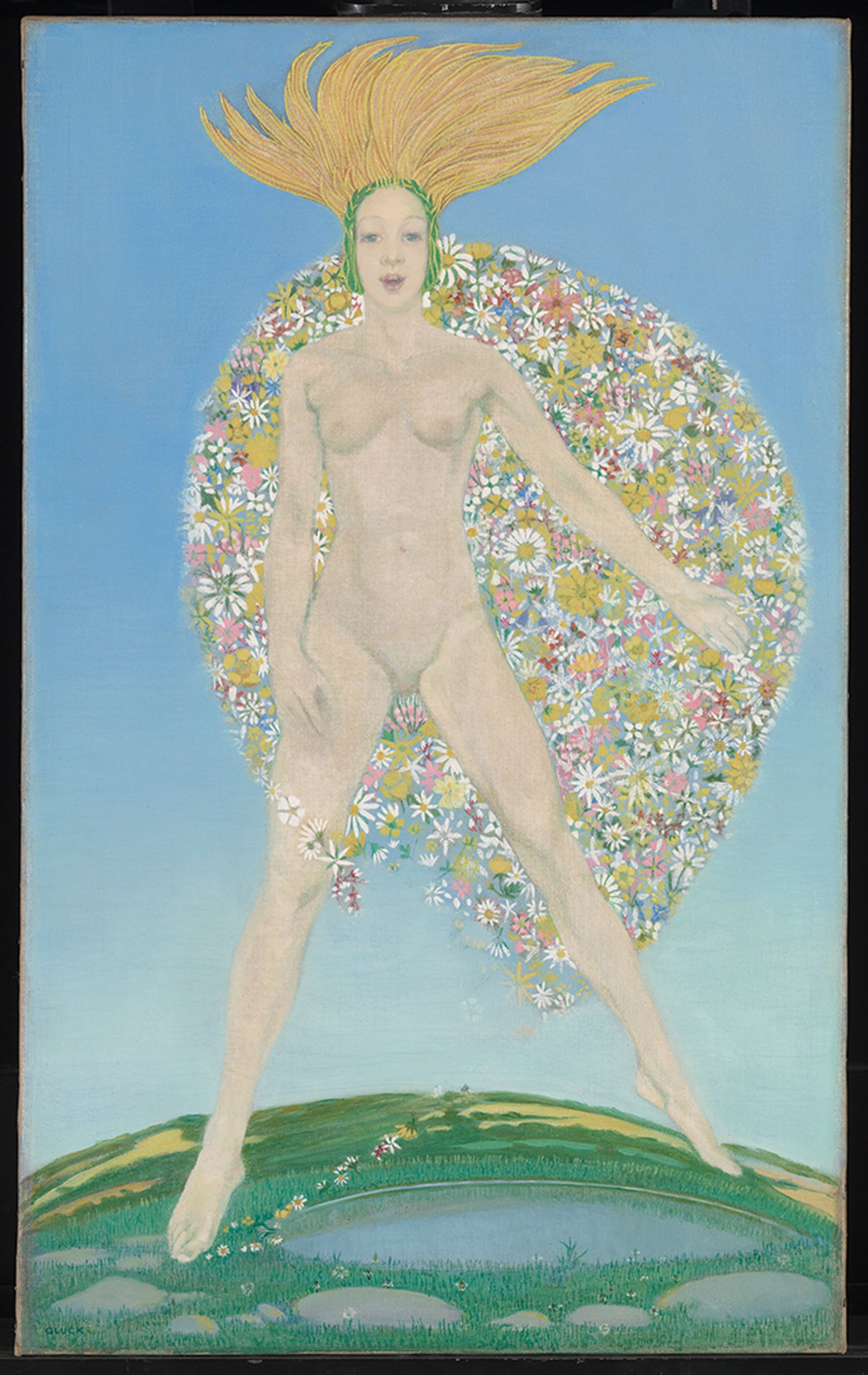 Eventually the aesthetic tables turned and it was not Spry who derived inspiration from art but the other way round. In 1932 she was introduced to the painter Hannah Gluckstein, always known as “Gluck”. The women soon developed a romantic friendship and, inspired by Spry’s work, Gluck immortalised a number of her arrangements in strikingly formal still-life paintings. As a personal tribute to Spry’s art, Gluck gave her a painting called Flora’s Cloak in which an ecstatic and androgynous nude with flame yellow hair appears against a cloud of delicate pink and white daisies. The pair’s relationship lasted just four years and Gluck, always conscious of transience and mortality, appeared to anticipate its end with a painting composed of sere leaves, flowers and dried seed heads. She called it Dead Group.