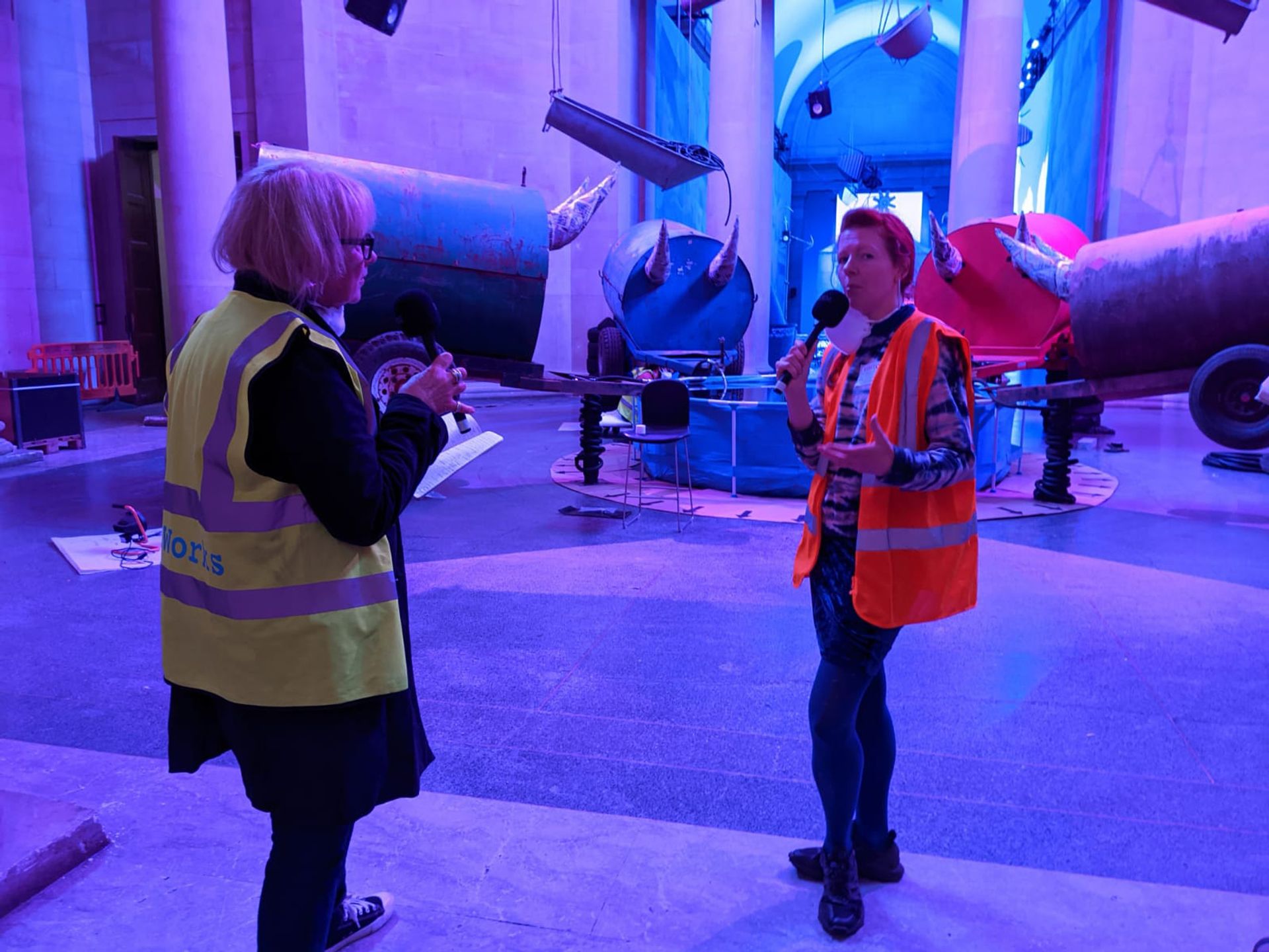 The artist Heather Phillipson with our contemporary art correspondent Louisa Buck in Tate Britain's Duveen Galleries © David Clack
