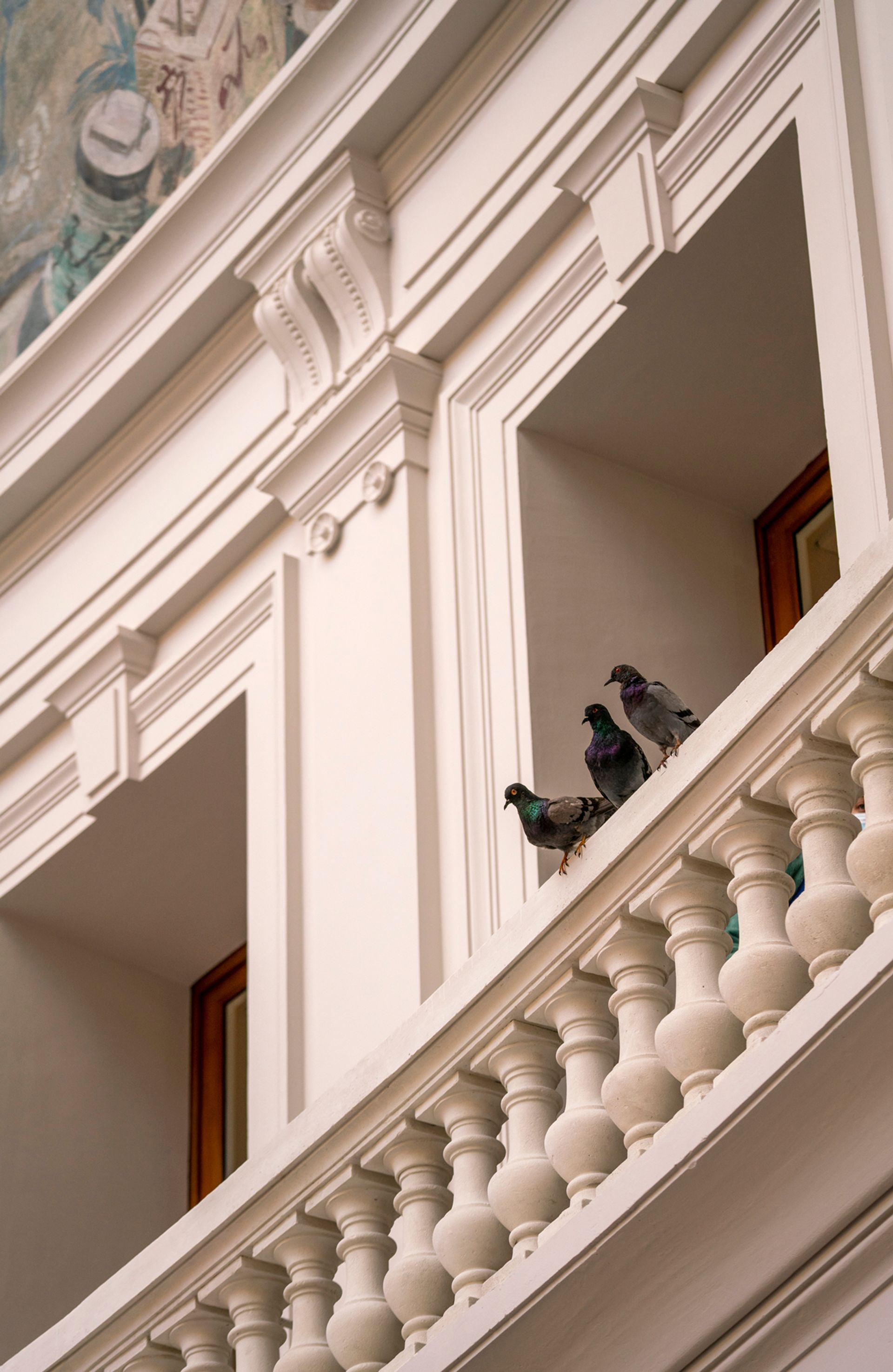 Several major works on show have already been exhibited in Venice, either at the Biennale or in Pinault’s museums, but Bethenod says that they are all now staged differently. A funny little mechanised mouse by Ryan Gander pops its head through holes in the wall. And 52 taxidermied pigeons by Maurizio Cattelan circle the rotunda. 200 of these showed up in 1999 at the Venice Biennale as Tourists and then returned 2000 strong as Others for the 2011 edition—a reference to the influx of migrants that crossed the Mediterranean around that time.