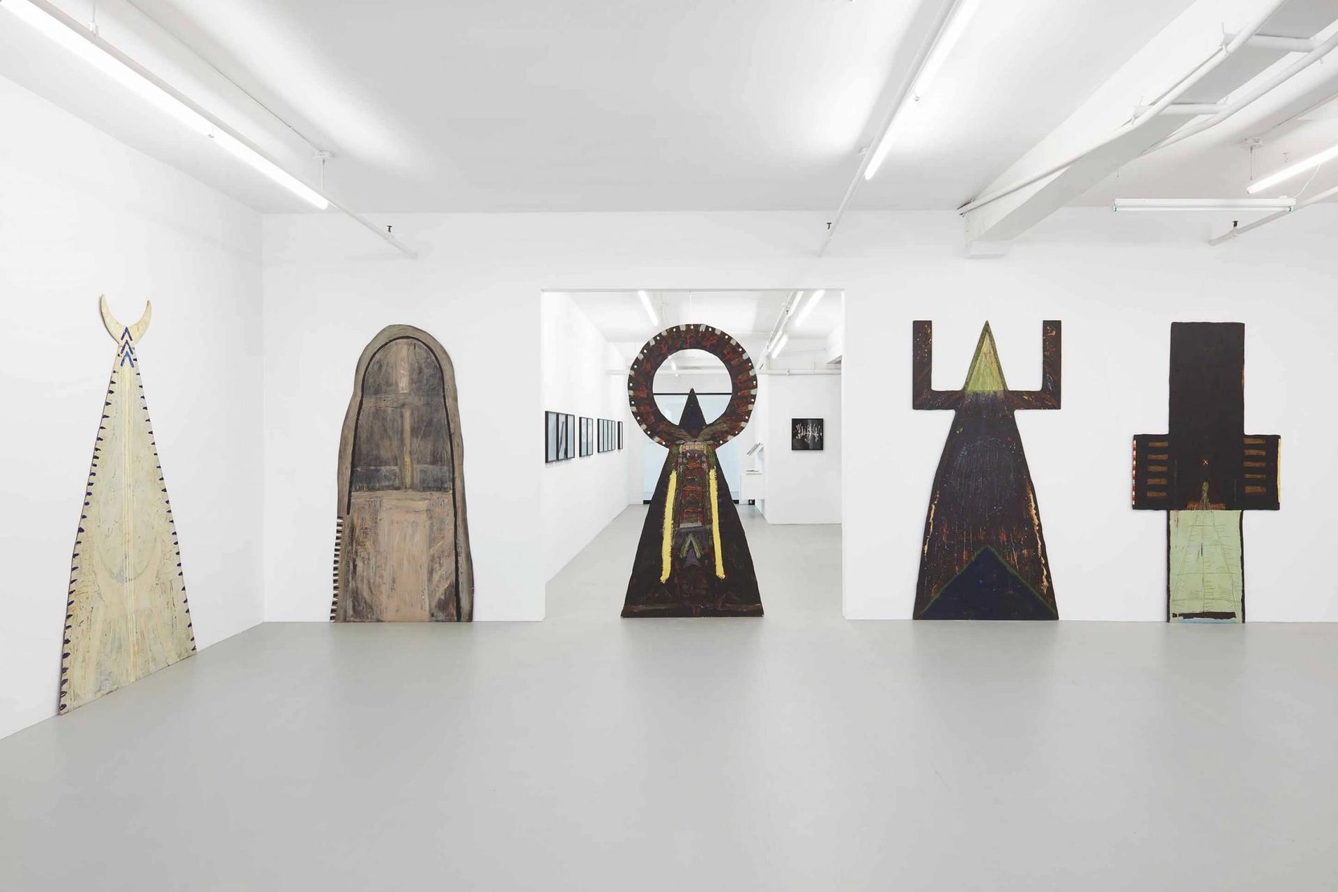 Installation view, Mary Beth Edelson, "Shape Shifter" at David Lewis, New York, 2019