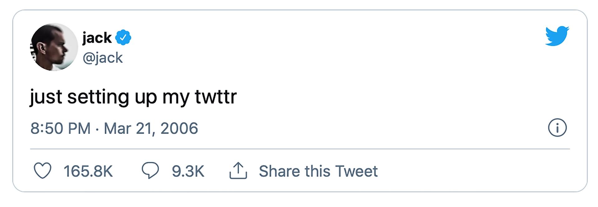 Jack Dorsey's First Tweet, sold as an NFT for $2.9m