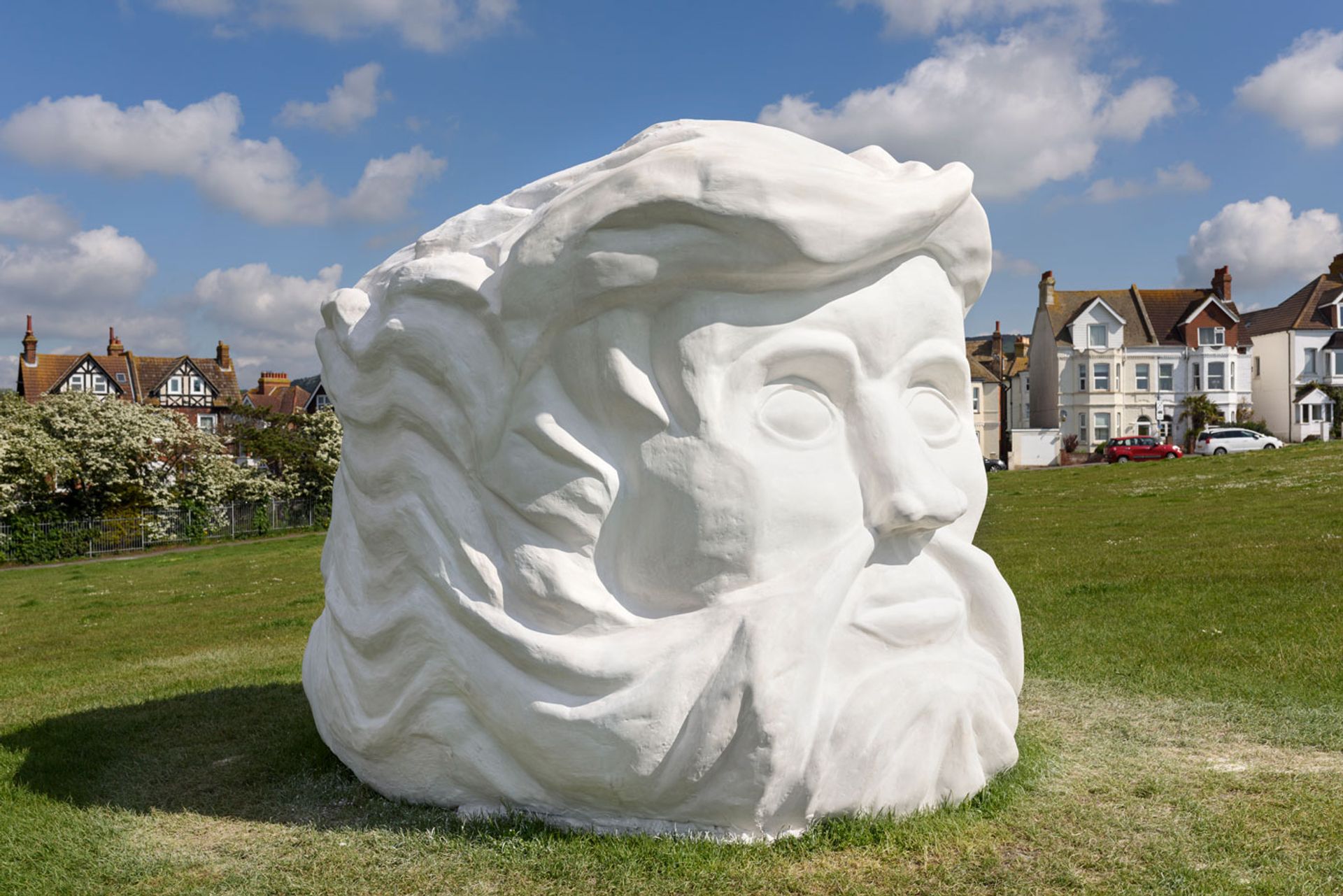 One work that plays with borders is Janus Fortress: Folkestone by the Chilean artist Pilar Quinteros. The giant plaster head of the two-faced Janus, the Roman god of passages or transitions, faces both out to sea and inland. The work, which is made to slowly disintegrate under the elements like the nearby chalk cliffs, is also part of the forthcoming Folkestone Triennial (22 July-2 November). “[T]he specific location of Folkestone makes me think of that region of the country and its history being an important border, as a place of simultaneous entries and exits,” Quinteros says. The artist has called the work “a monument to uncertainty”.