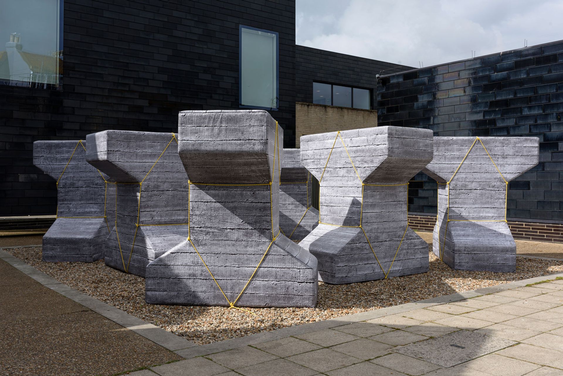 Rising sea levels and the increased use of sea defences are playfully deconstructed by the Greek artist Andreas Angelidakis’s Seawall sculptures, placed outside Hastings Contemporary. On the face of it they appear to be a set of concrete blocks used on shorelines to prevent erosion, but instead are soft sculptures that visitors can play with and recline on.