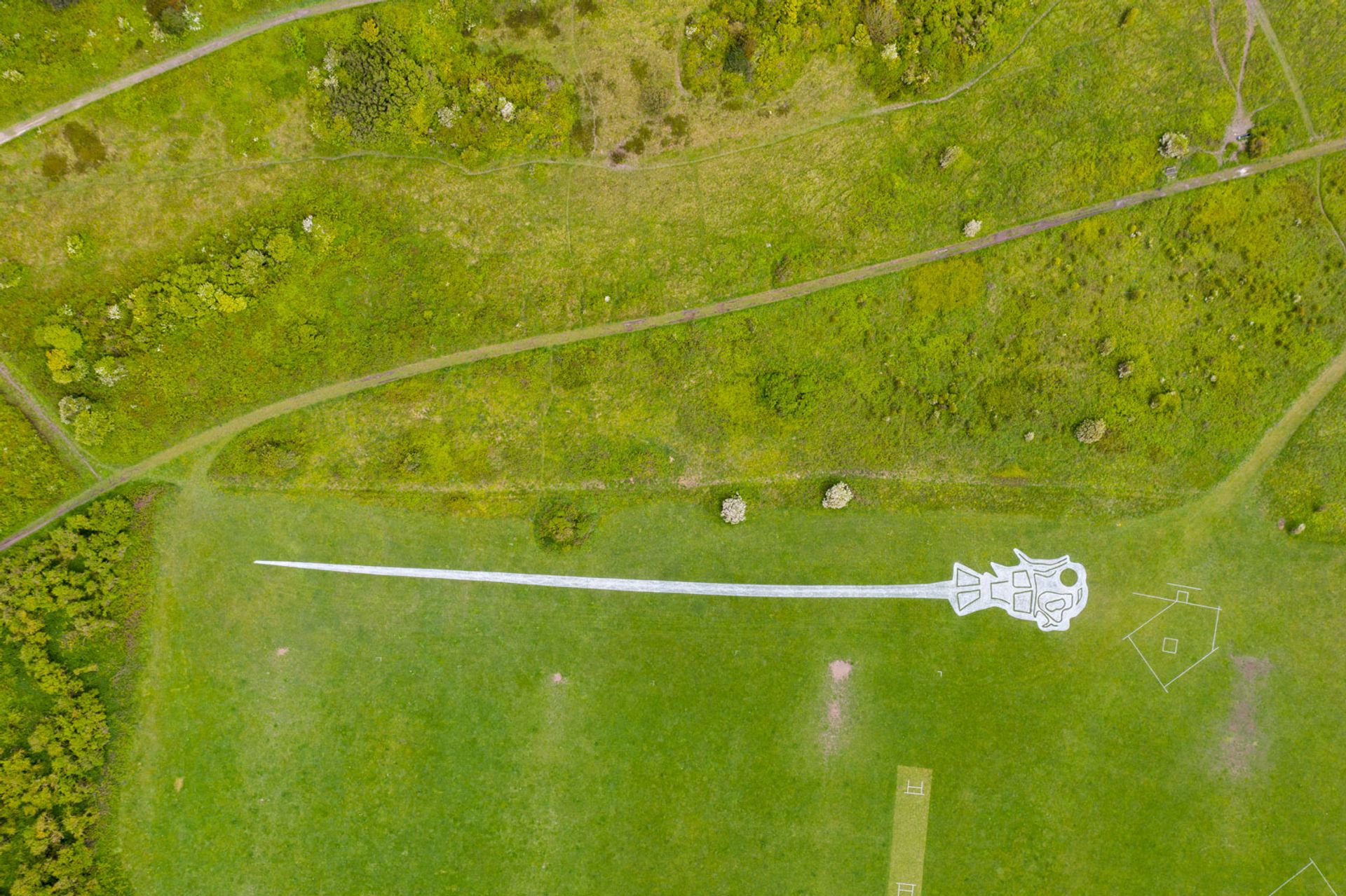 Another work already making waves in Eastbourne is Walking through the town I followed a pattern on the pavement that became the magnified silhouette of a woman’s profile by the Mexican artist Mariana Castillo Deball. Part of the work consists of a rope trail painted onto the town’s streets, leading to small sculptures embedded in the pavement and if seen from above traces the silhouette of a young woman discovered in a local archaeological dig. The piece “has already provoked an incredible response among people there, wondering what they are, wanting to know more and really taking notice of that,” Dillon says.