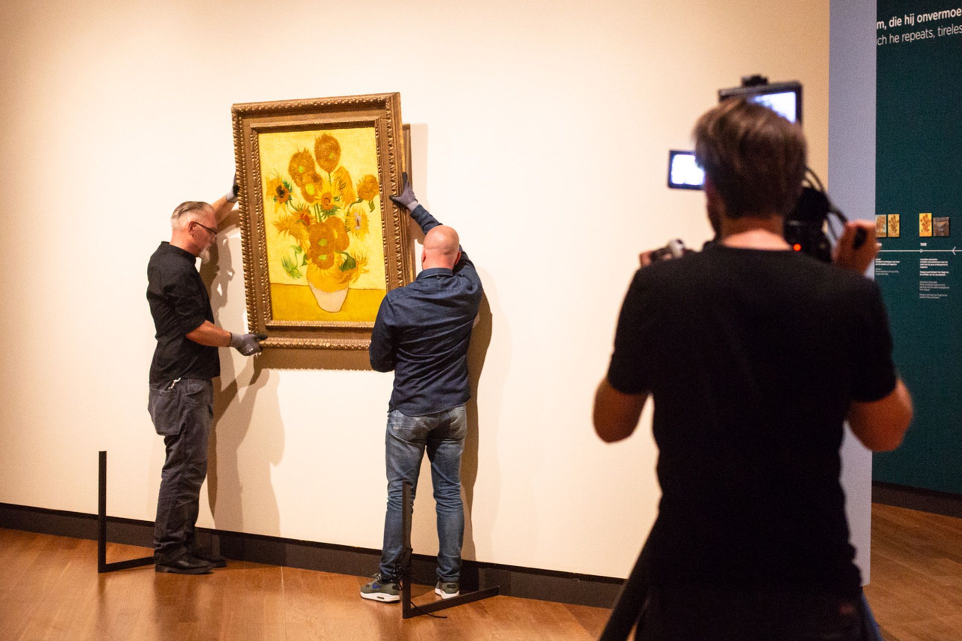 Sunflowers being filmed at the Van Gogh Museum, Amsterdam Photo: David Bickerstaff, Exhibition on Screen