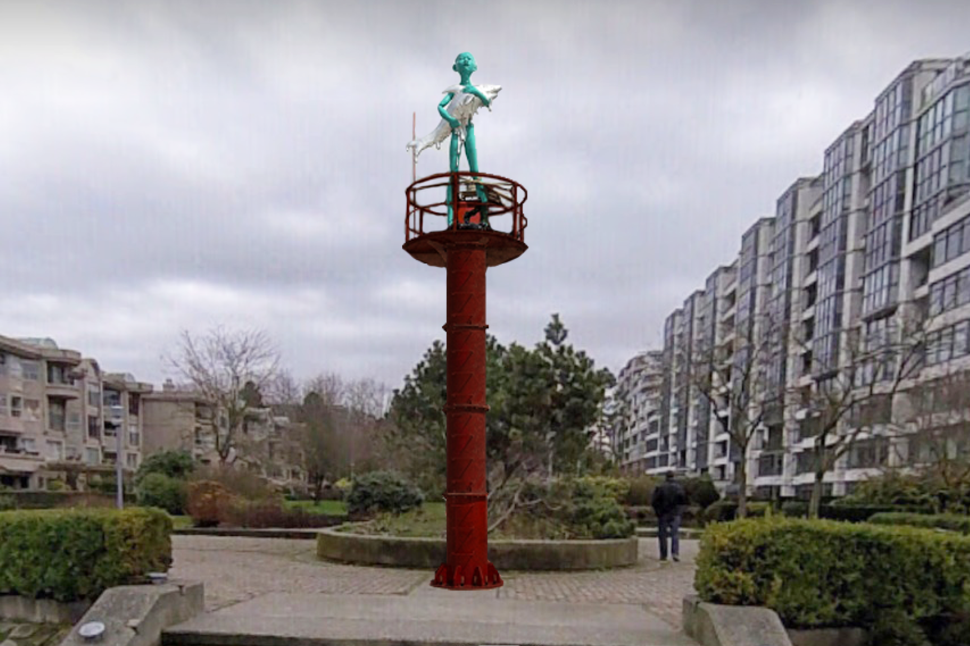 Vancouver has a history of opposition to and heated debate about public art. A decade ago, when the Vancouver Biennale presented Dennis Oppenheim’s Device to Root Out Evil—a 25-foot, upside-down, New England-style church with its steeple thrust into the ground—the Vancouver Parks Board was flooded with complaints voicing offended Christian sensibilities, and it was eventually—and rather ironically—driven out of town by “concerned” residents who complained it blocked their views.