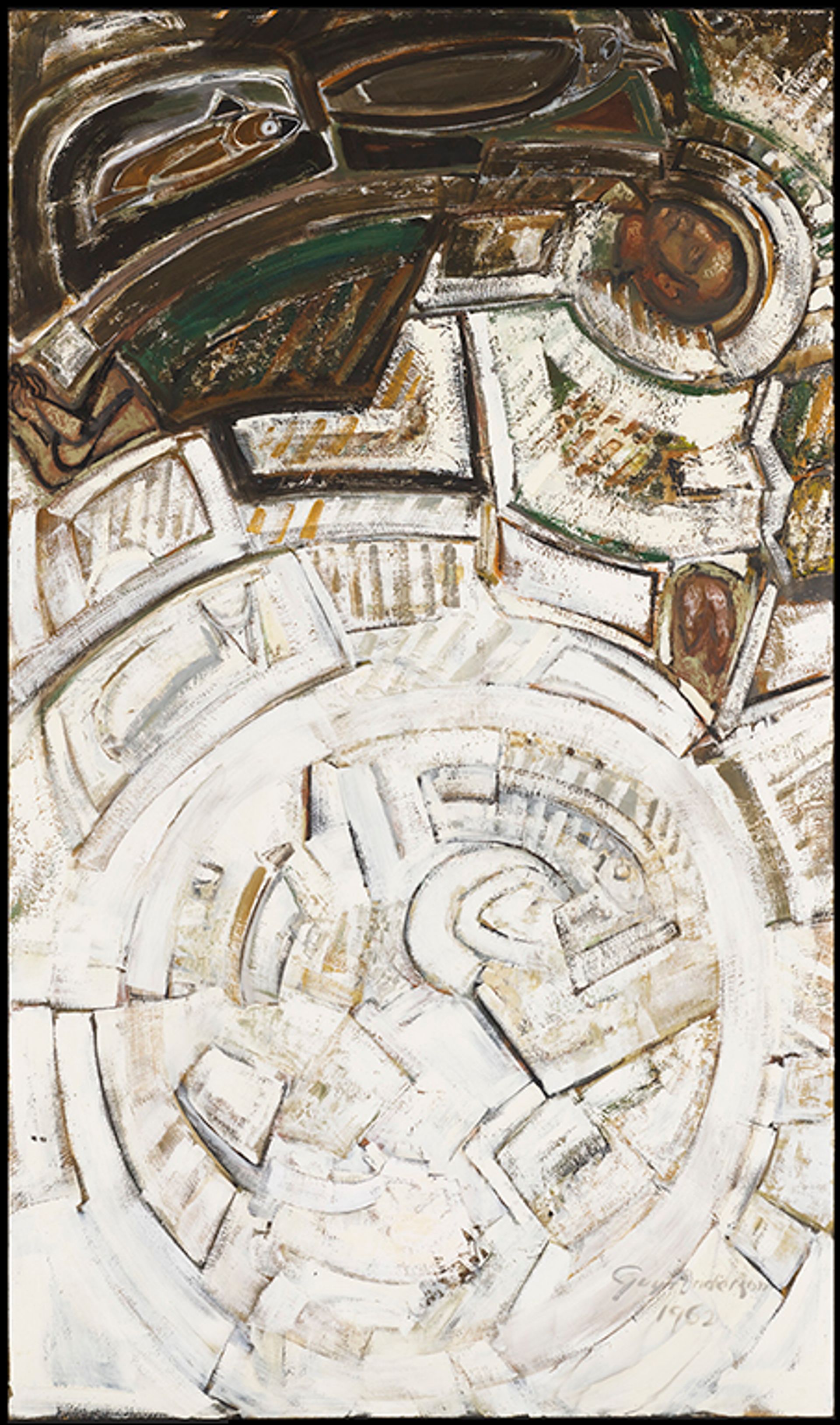 Guy Anderson's Dream of the Language Wheel (1962). Embedded in the upper half are symbols from Indigenous Northwest Coast cultures Courtesy of the Seattle Art Museum