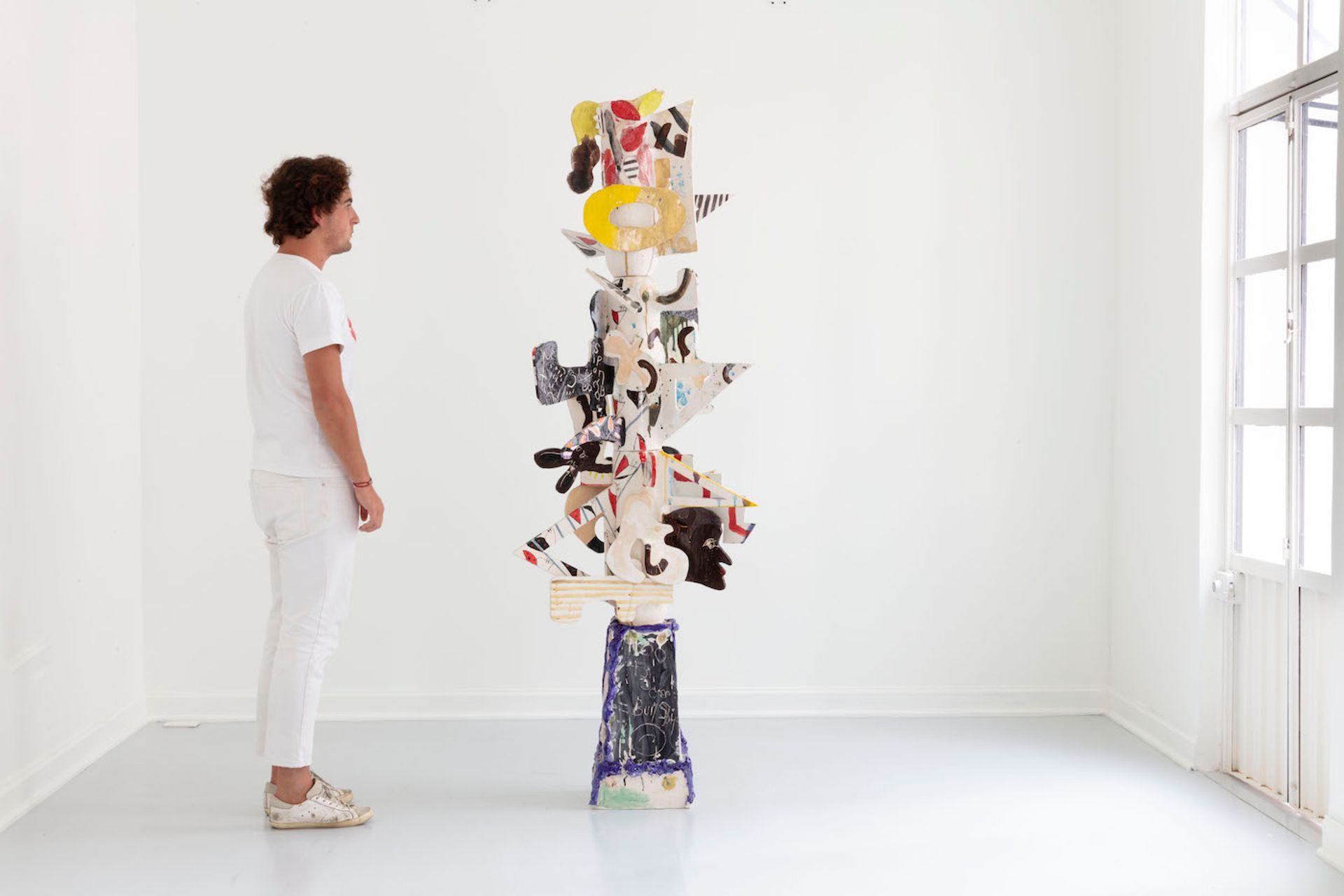 The Spanish dealers Silvia Ortiz and Inés López-Quesada of Travesía Cuatro, which operates in Madrid, Mexico City and Guadalajara, are presenting sculptures by three women artists, Donna Huanca, Teresa Solar and Milena Muzquiz. The works have elements of “facial expressions fluctuating between the extremes of the human psyche, like masks used in ancient Greek tragedies or in Japanese Noh dramas”, a spokeswoman for the gallery says. A totemic sculpture by Muzquiz “blends scenery and people into a lyrical collage”, while Solar’s ceramic glazed sculpture is “populated with connotations of connectivity and flow that interprets the clay as a metaphor for the relationship of the human and the geological mantle inhabited by our civilisation”.