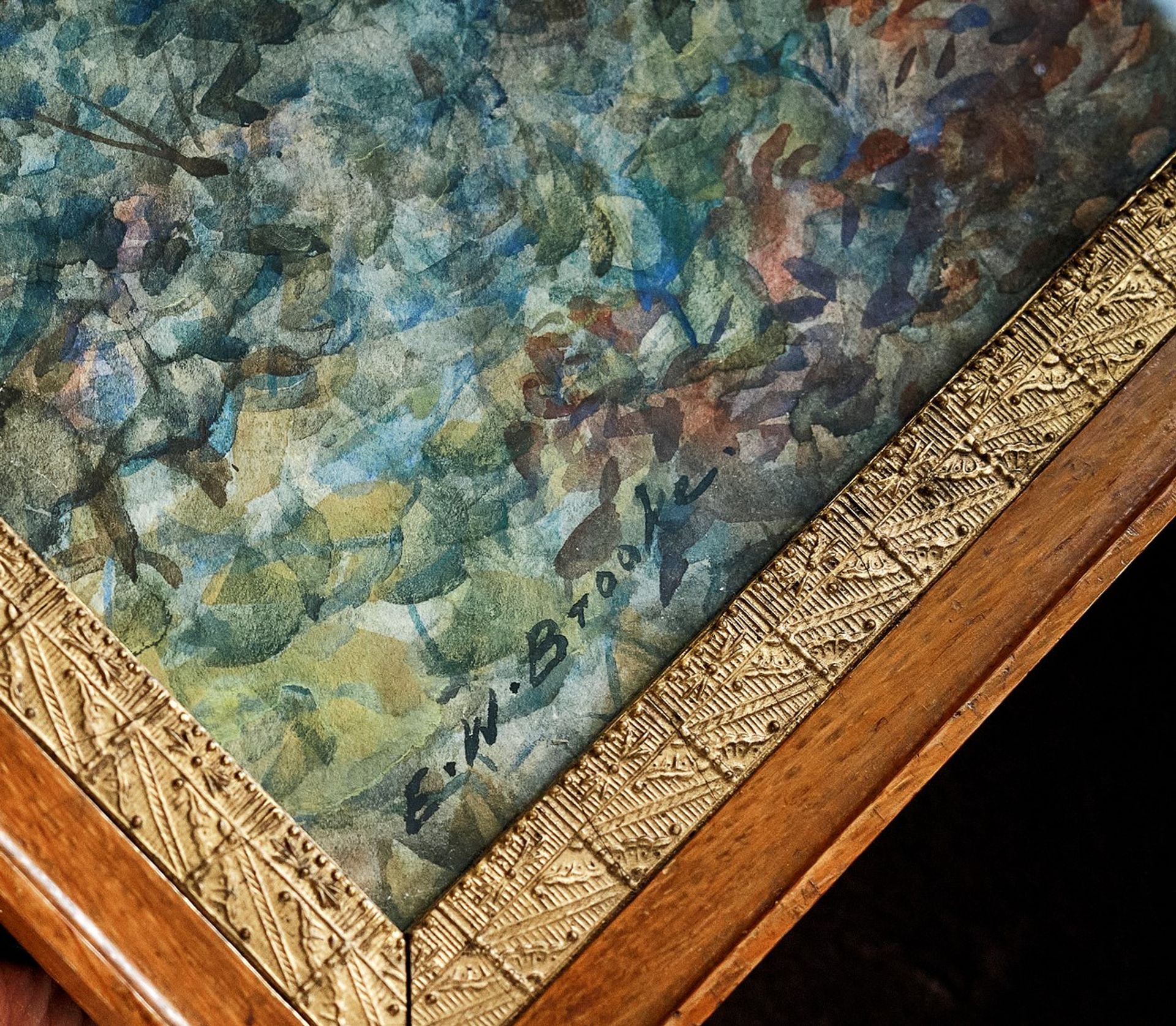 Keraghan acquired the painting about 15 years ago from an estate in Ossipee, New Hampshire—from a family that had moved from southern California. Brooke had two brothers in California, so this represents a potential link with the artist.