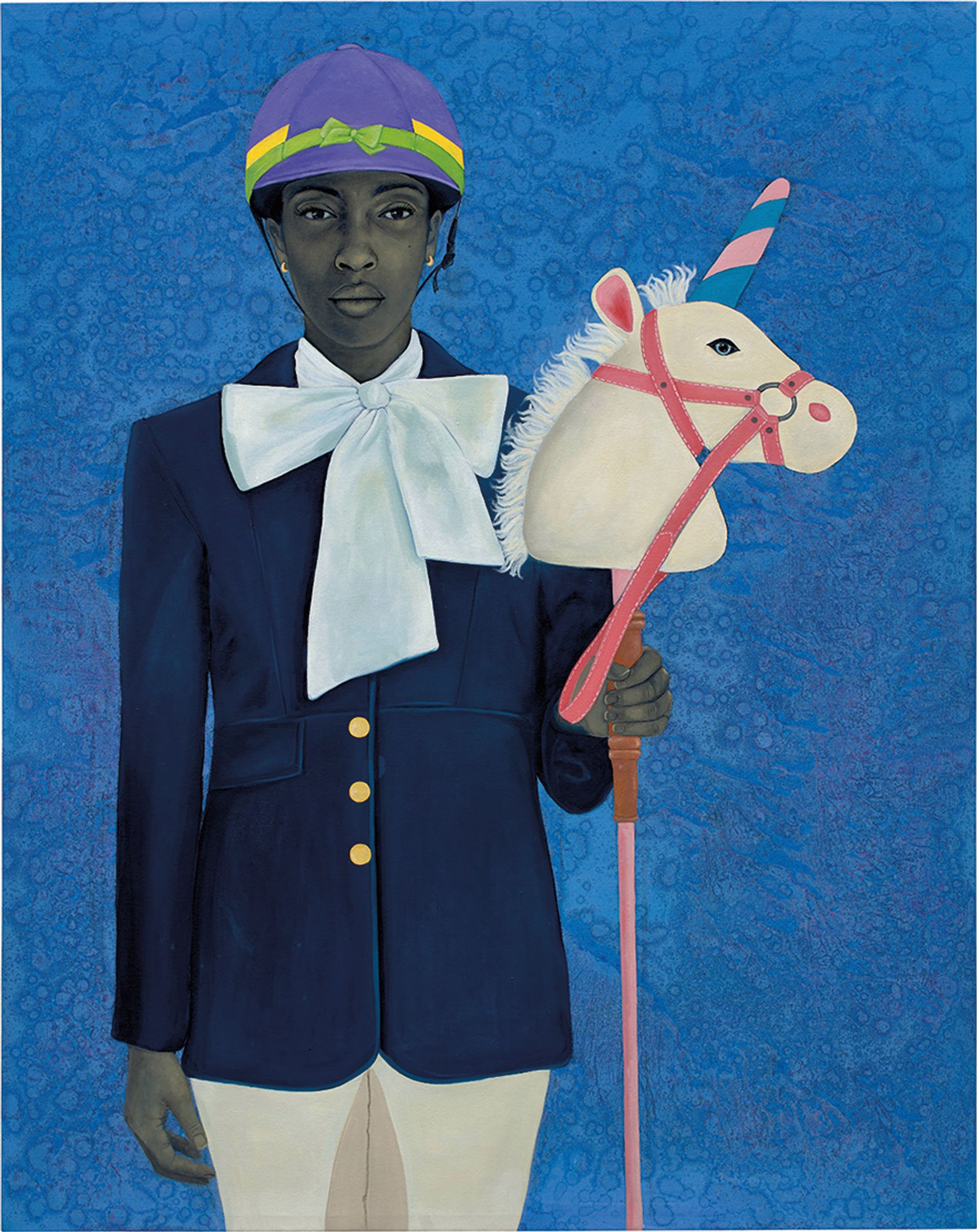 This surreal, arresting painting by the American artist Amy Sherald has hung in the National Museum of Women in the Arts in Washington, DC since 2012, just a year after it was painted. The owner, who bought it directly from the artist, is now selling it through Phillips but will give a portion of the proceeds to the museum, which closes for two years in August for a $66m renovation of its 1908 Classical Revival building. According to Kevie Yang, Phillips’s international specialist of 20th-century and contemporary art, Sherald was inspired to paint the work when she saw her friend’s mother doing dressage on her horse, and “it reminded [Sherald] of her personal experience as a teenage girl, going to a horse-riding camp where most of the kids in the camp were white”. This painting has a wry sense of humour—the subject is dressed in smart riding gear, ready to compete… on her toy hobby horse. But her unflinching gaze also confronts the uncomfortable truth that it is still unusual to see a woman of colour in an equestrian setting.