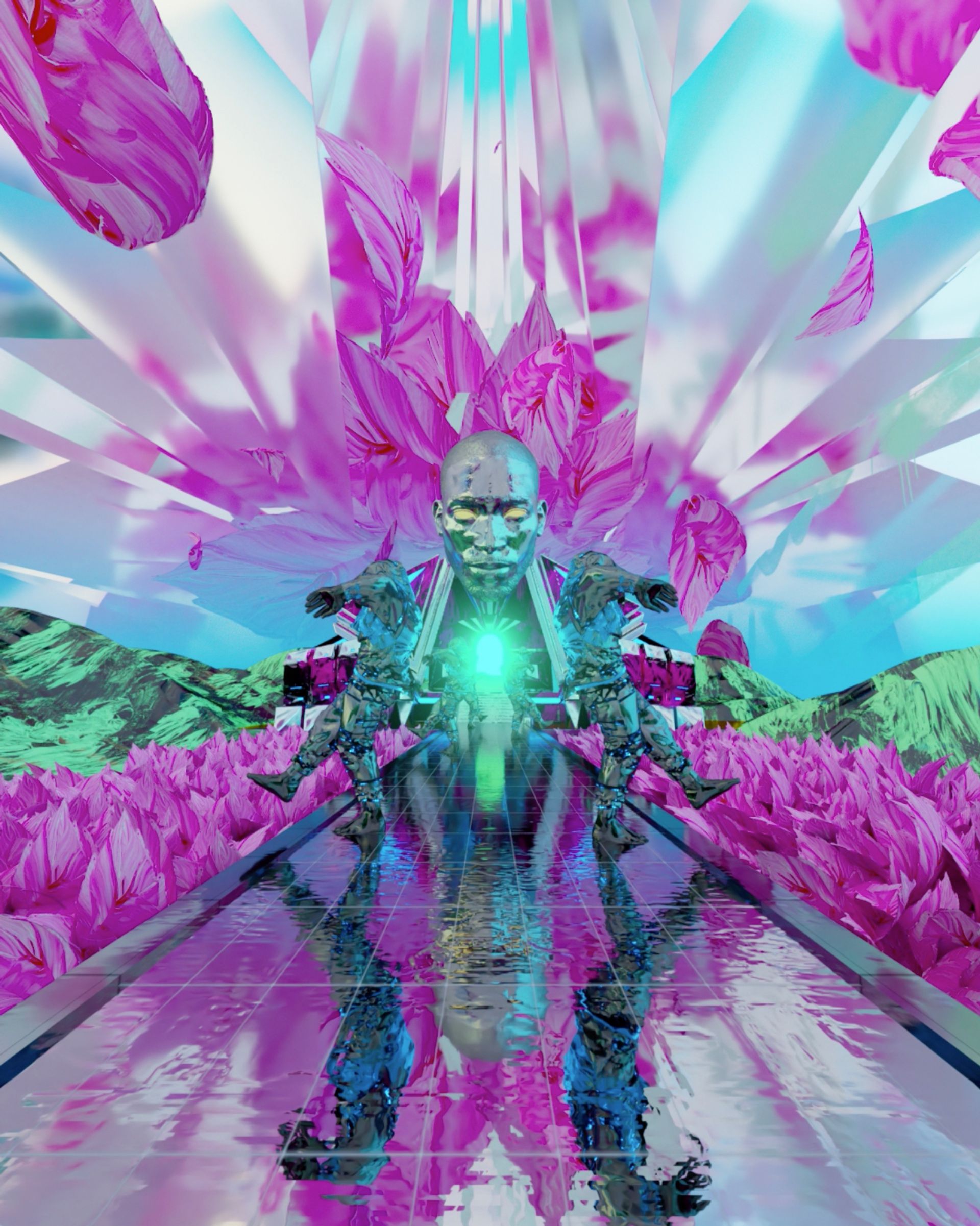 An NFT video still of Present the Future, a collaborative digital artwork by Sassan Behnam-Bakhtiar, Tinie Tempah and Vector Meldrew Images courtesy of the artists