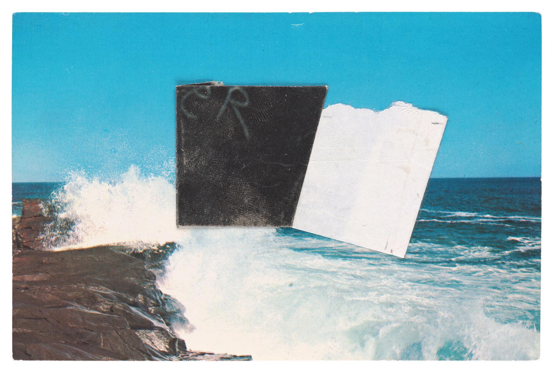 For more than 50 years, Kelly made close to 400 postcard collages. Some were sent to friends and family, while others were kept by the artist at his studio, using the same postcard multiple times, experimenting with different shapes and configurations. Some were later used as a basis for larger works, such as his two-panel painting White and Dark Gray Panels and the shaped painting Curved Gray Panel, both created in 1977.