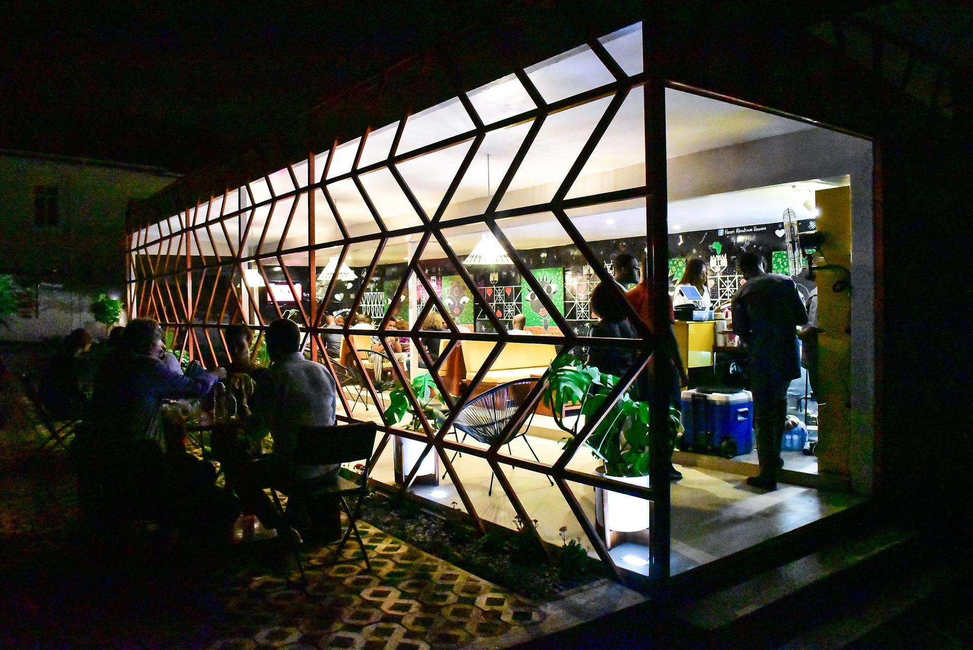 My sister Olayinka Dosekun-Adjei also comes from an academic background like myself but she retrained as an architect and decided to move back to Nigeria and start her own architectural practice, Studio Contra. Redesigning the Retro Africa gallery was a collaborative process between us. We wanted to create the hub and not just the gallery space, so we have a we have a café that is a pretty popular space in Abujato hang out. There is also a four-room boutique hotel which you can get to through the gallery. We created these different elements because we thought about how best to get people to engage with the art world, and we realised that Abuja is a very social space with a lot of restaurants and bars, and a lot of people traveling to the city for business. We wanted to capture that audience as well; to have people come in just to grab a bite or a drink after work or to staying the night, but then immediately immersed in the gallery, unknowingly or unintentionally.