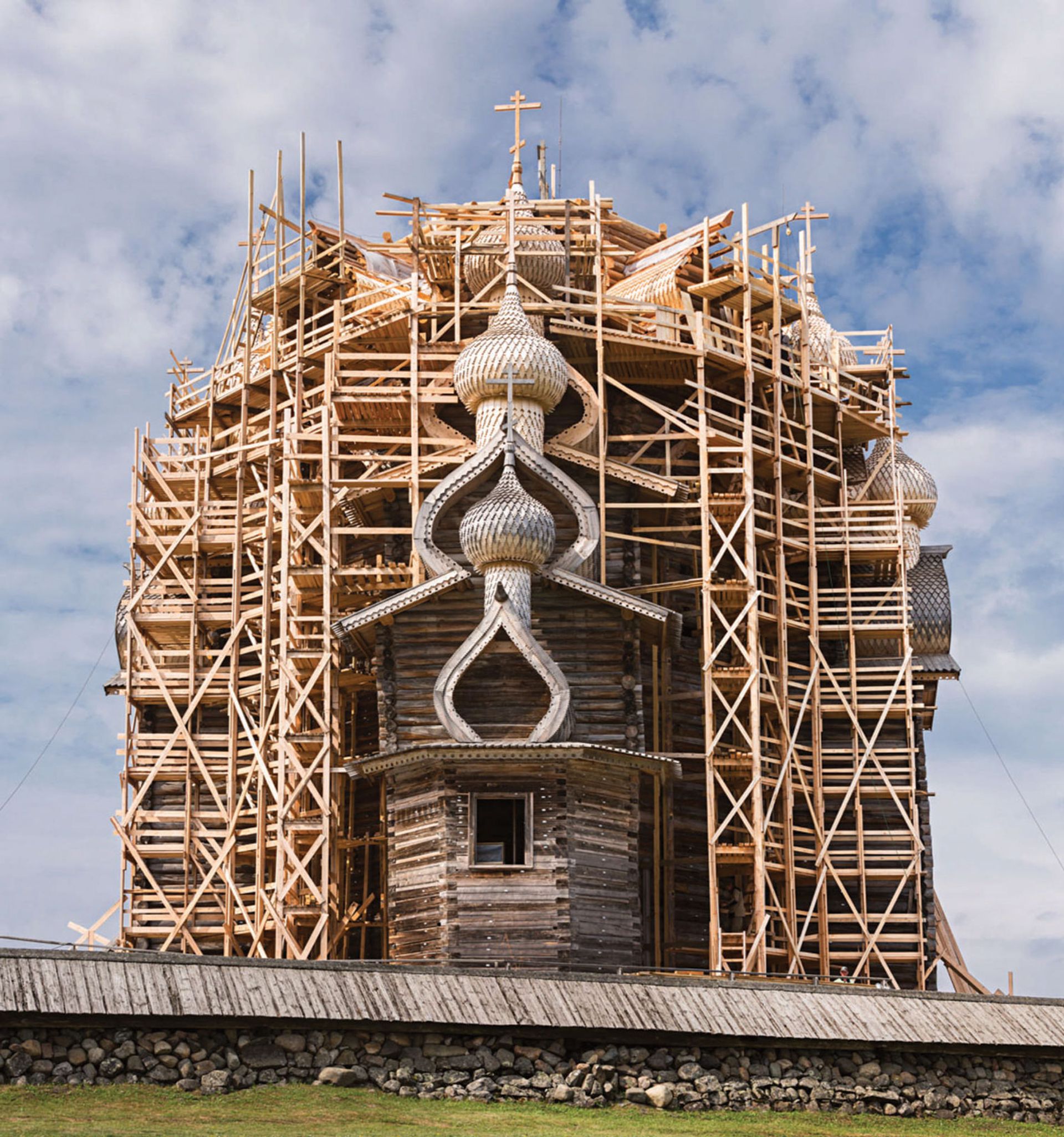The 37m-tall Church of the Transfiguration was built by craftsmen drawing on ancient and somewhat mysterious traditions of wooden construction. It was in dire condition for decades, and specialists and bureaucrats sometimes warred over restoration plans because of its unique architecture. The conservation process involved numerous commissions and consultations with international experts.
