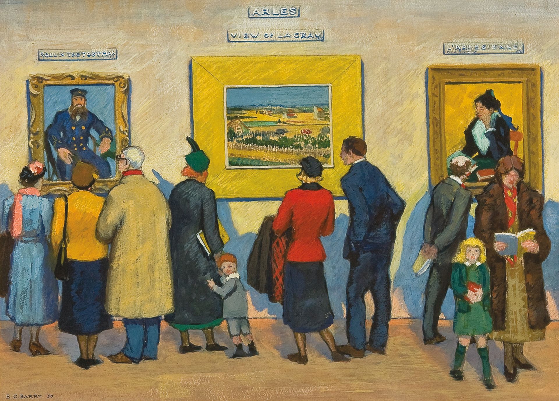 Later that year, The Harvest left their sitting room to travel to a major Van Gogh exhibition at New York’s Metropolitan Museum of Art. There it was captured in a delightful painting by the artist and illustrator Edith Barry, showing visitors sporting the latest fashions of mid-century America.