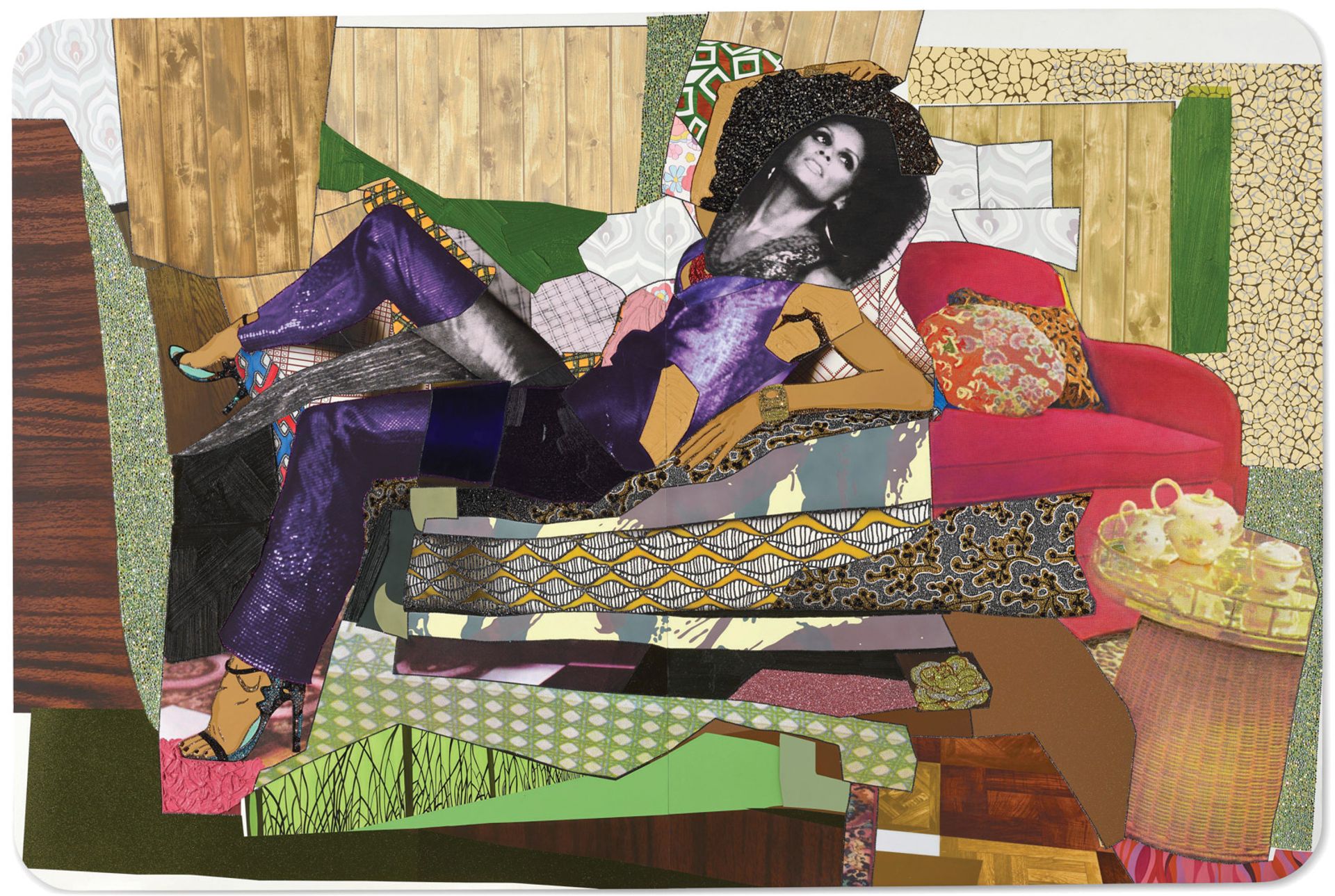 Auction success: Mickalene Thomas’s Racquel Reclining Wearing Purple Jumpsuit (2016) © Christie’s Images LTD, 2021