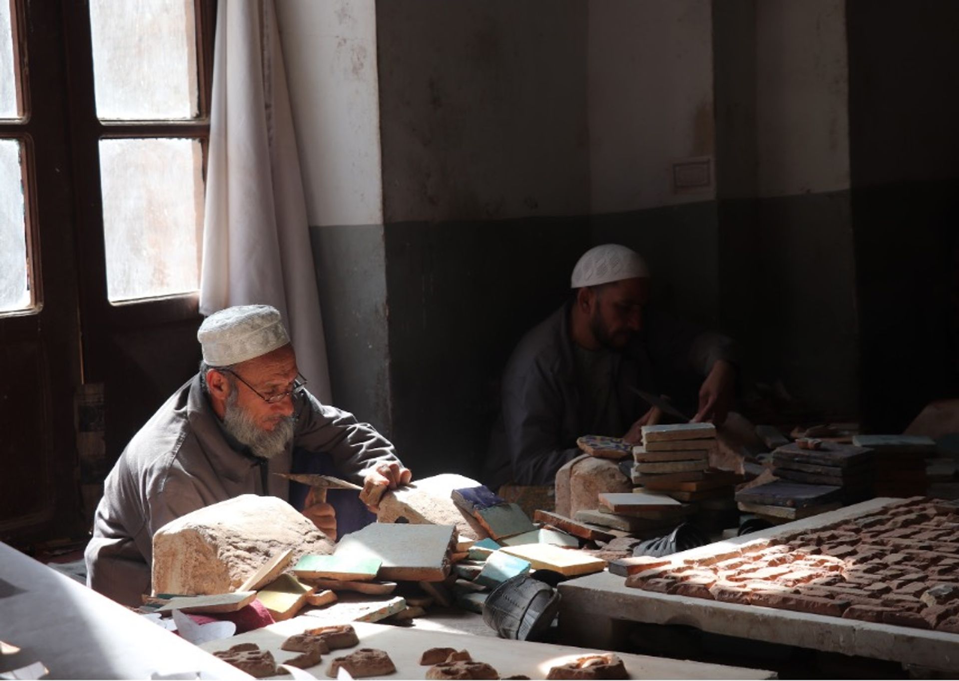 Tile-making artisans at the Herat Friday mosque, now under Taliban control Photo: Bastien Varoutsikos and team, 2019