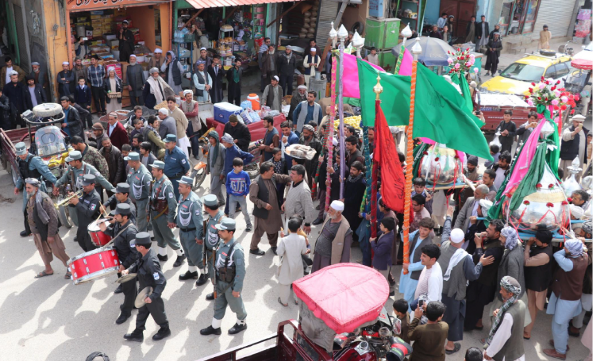 A procession takes the quba back to the Hazrat ‘Ali shrine just days before Nowruz, Persian New Year Photo: Bastien Varoutsikos and team, 2020