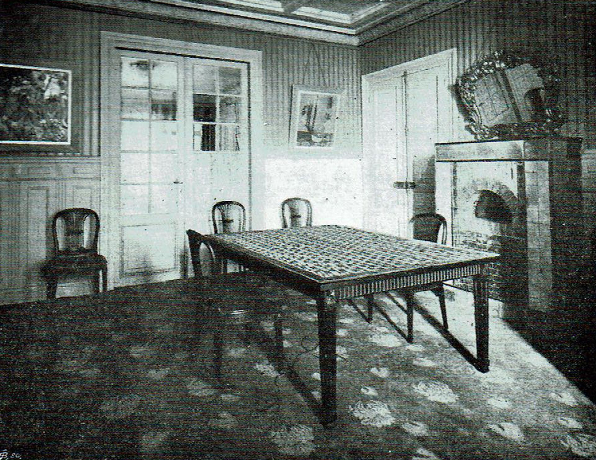 Octave Mirbeau’s dining room, with Three Sunflowers hanging in the middle and Irises on the left, published in Revue Illustré, 1 January 1898