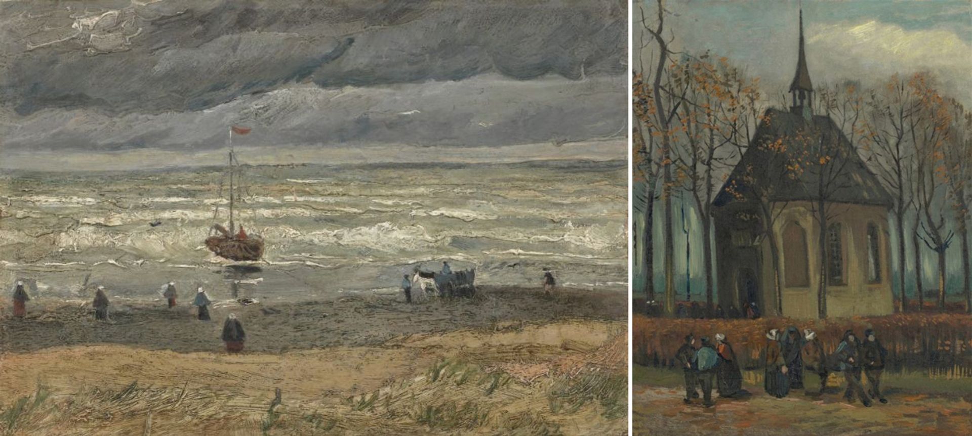 Van Gogh’s View of the Sea at Scheveningen (August 1882) and Congregation leaving the Reformed Church in Nuenen (January-February 1884 and autumn 1885) Courtesy of the Van Gogh Museum, Amsterdam