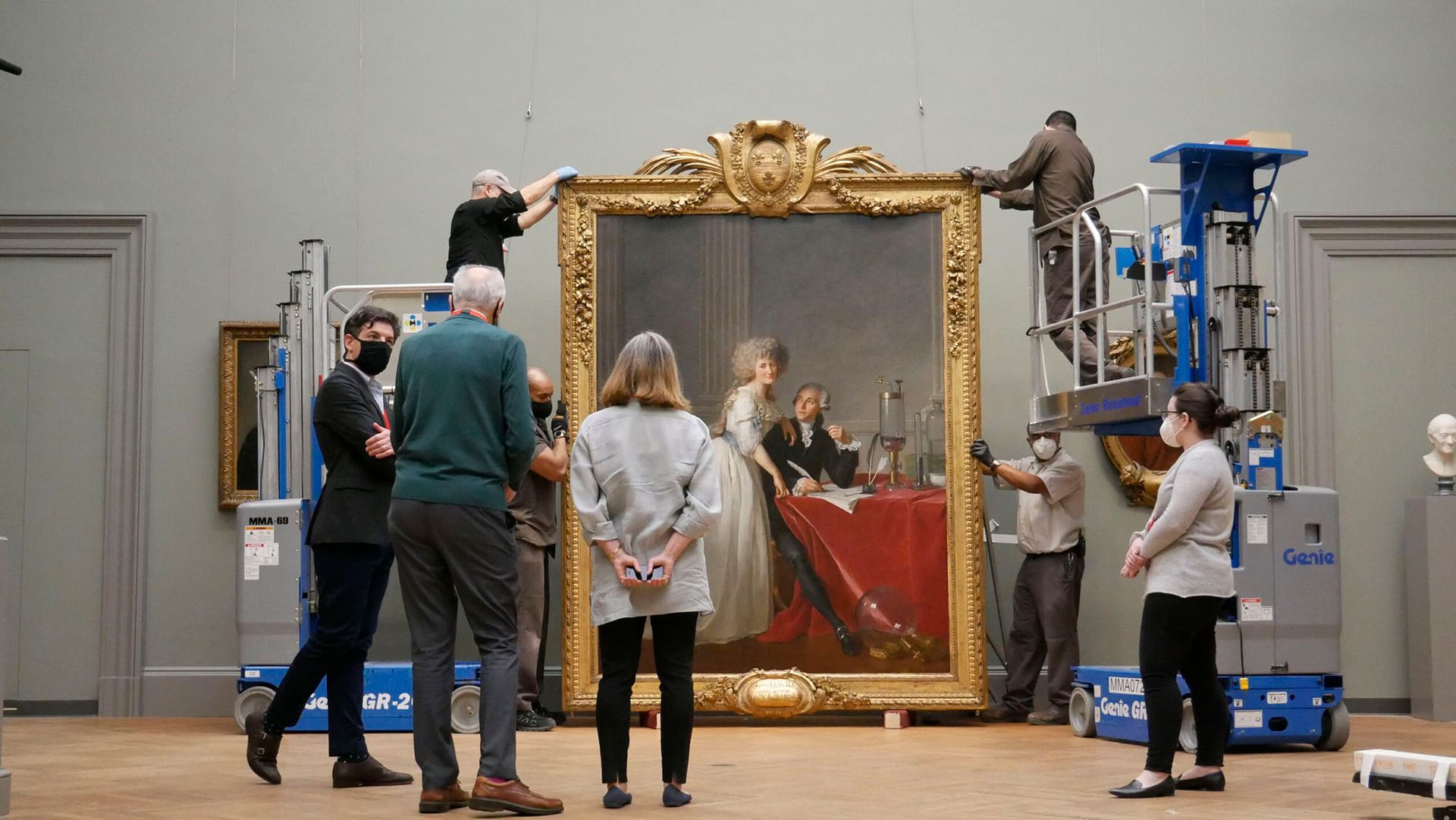 Jacques-Louis David's portrait of Antoine Laurent Lavoisier and Marie Anne Lavoisier, being reinstalled in the Met's galleries last November Eddie Knox © Oxford Films, 2020