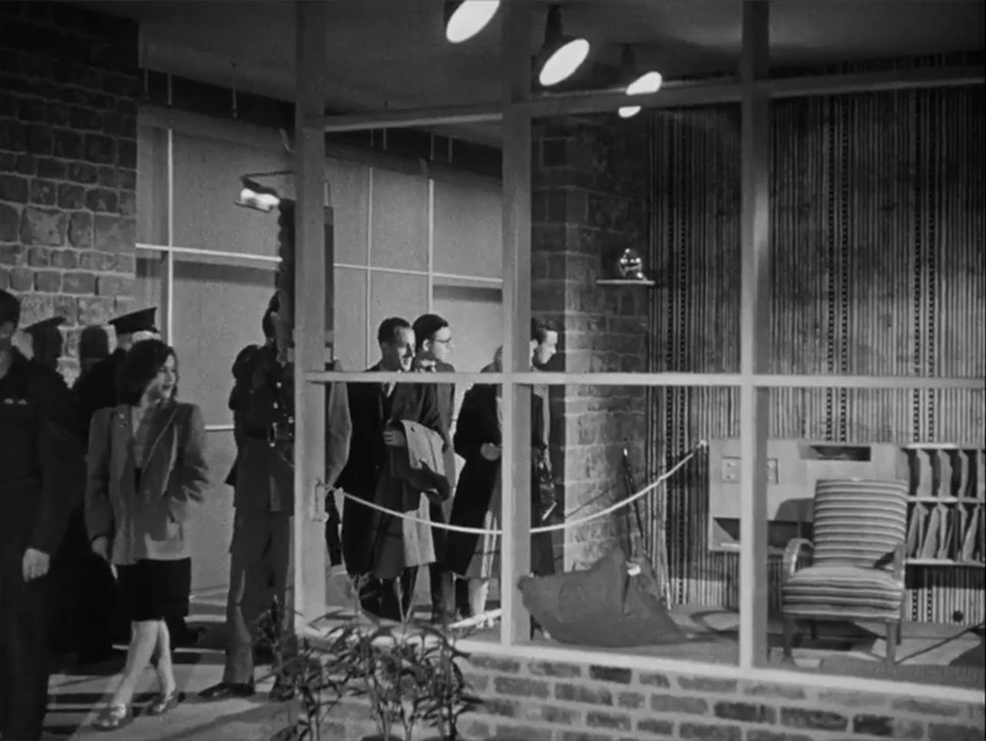Still from 'Britain Can Make It No.12' (1946 Crown © / courtesy BFI), showing visitors admiring the Furnished Rooms exhibit.