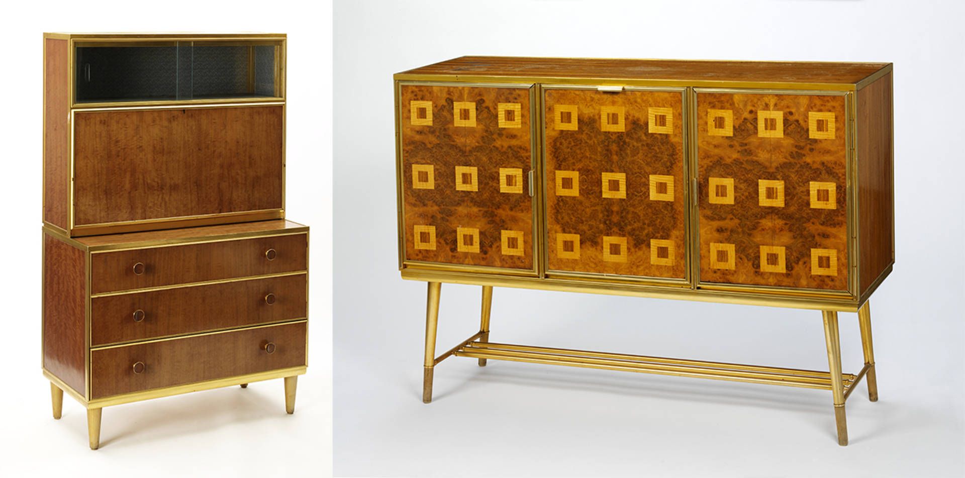 Left to right: desk, developed by A. E. Walsh for The Board of Trade's Utility Furniture Scheme, 1946– 8; cocktail cabinet, developed by A. E. Walsh for The Board of Trade's Utility Furniture Scheme, (1946-68) © Victoria and Albert Museum, London