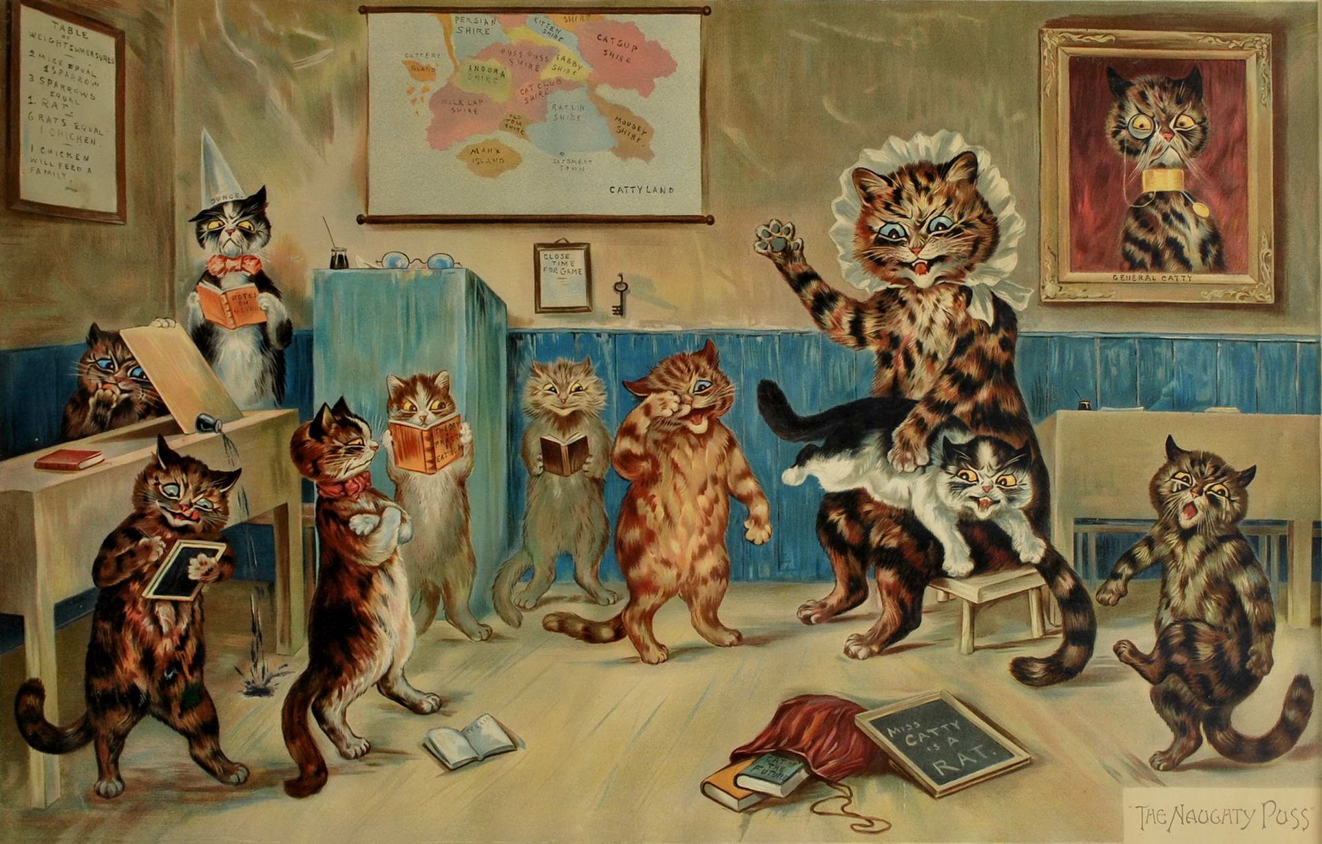 A lithograph based on Louis Wain's painting, The Naughty Puss