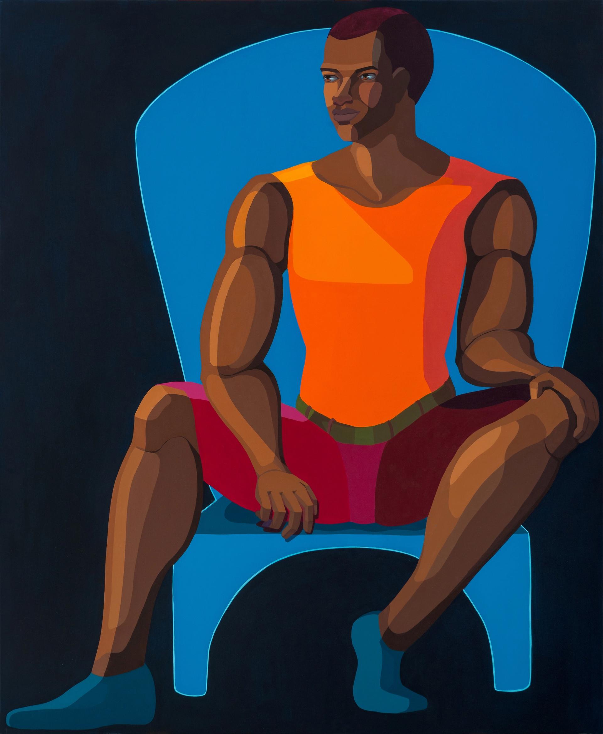 Nirit Takele's Young Man Sitting On Blue Chair (2021) Courtesy of Addis Fine Art