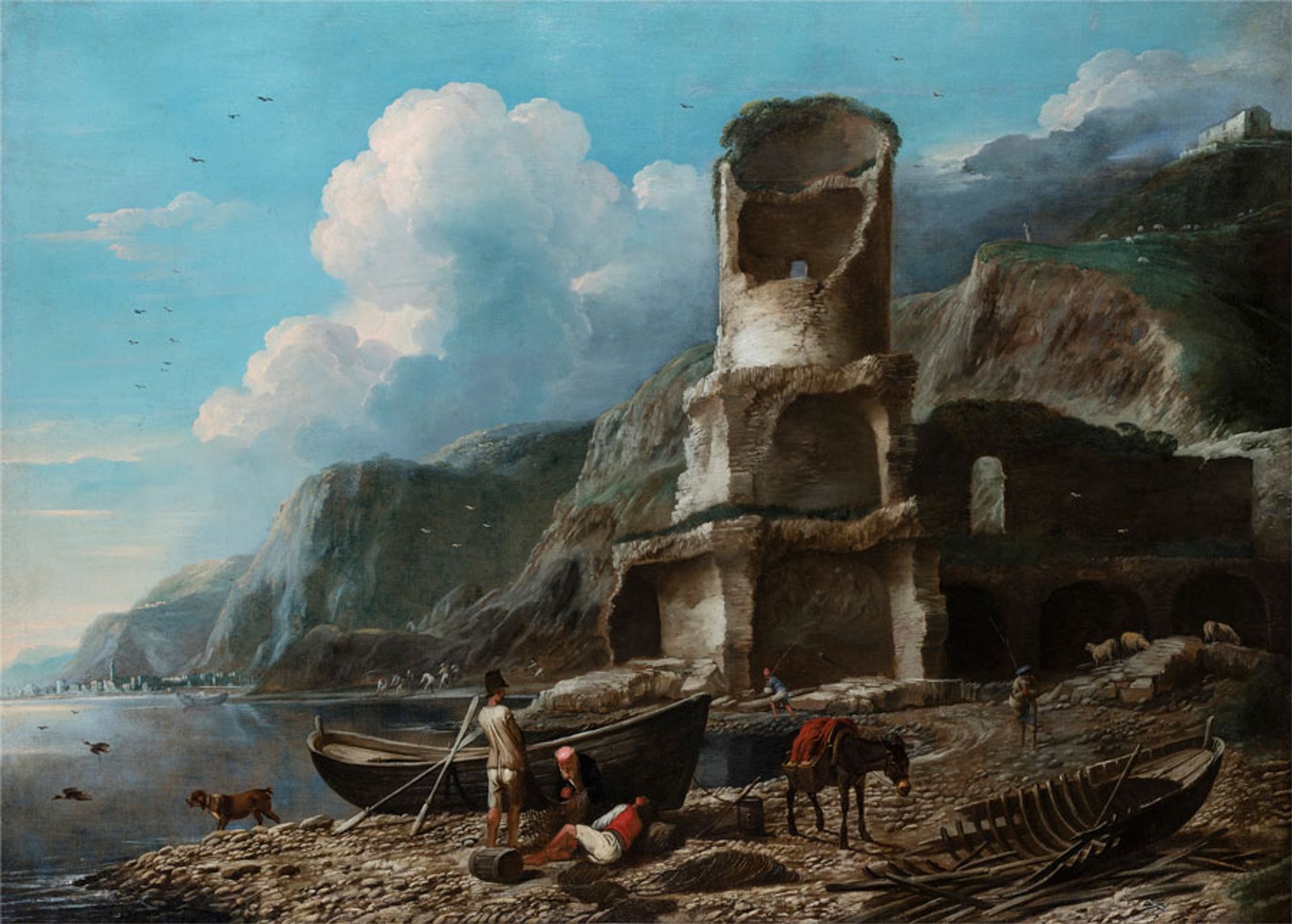 Antonio Travi, Shore with Fishermen and Ruined Tower (1650/1655), oil on canvas, private collection Courtesy Galerie Canesso, Paris