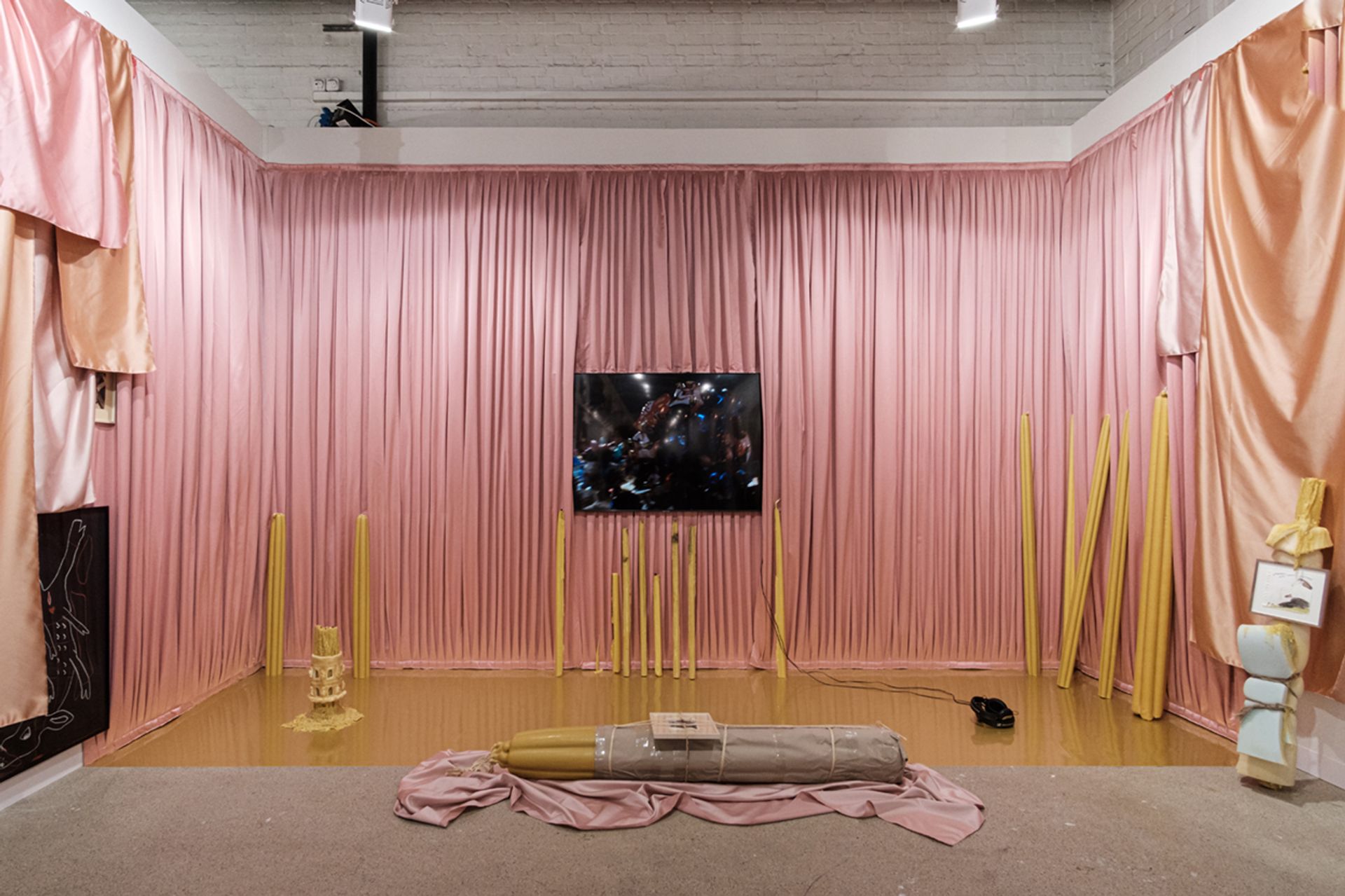 Installation view of Pauline Curnier Jardin's solo Art Basel booth with Ellen de Bruijne Courtesy Ellen de Bruijne Projects. Photo:Jeroen de Smalen
