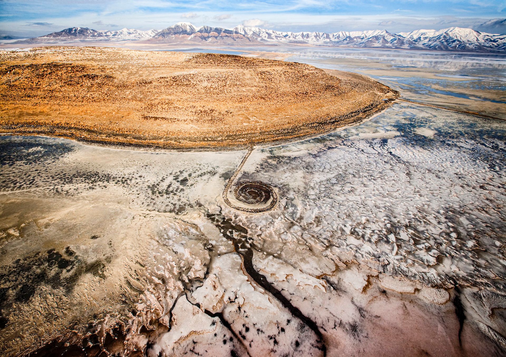 Gianfranco Gorgoni, Robert Smithson’s Spiral Jetty, Rozel Point, Great Salt Lake, Utah, 1970 (1970/2013) Photograph © Estate of Gianfranco Gorgoni; Artwork from the Collection of Dia Art Foundation; Artwork © Holt/Smithson Foundation and Dia Art Foundation / VAGA at Artists Rights Society (ARS), NY