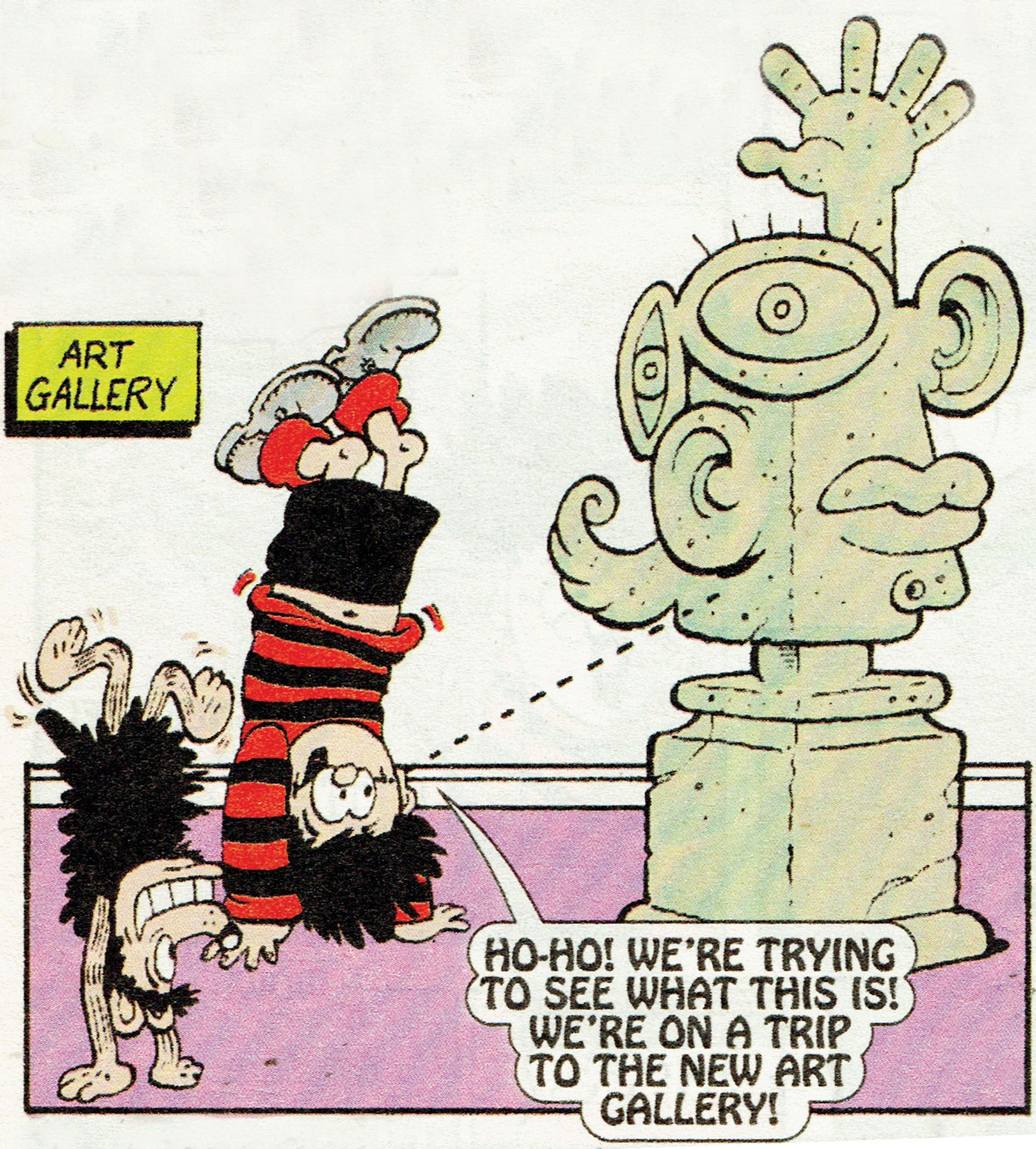 As an example of this sensibility, Holden mentions the performance art of Mark McGowan, who once cartwheeled from Brighton to London, as embodying the irreverence and silliness of a Beano character. There will be new commissions, including a new comic strip of Dennis the Menace as an old man by Nicola Lane and a two-way mirror sculpture by Simeon Barclay inspired by the Bash Street Kids character, Plug.