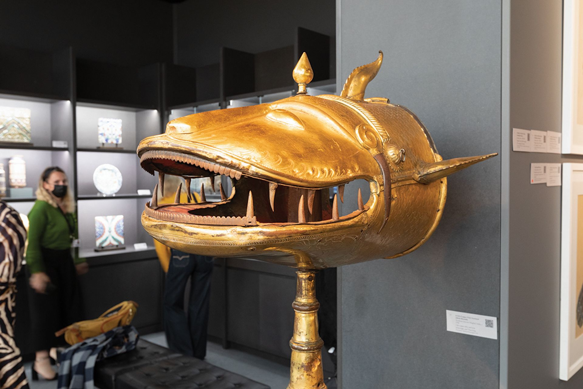 Can you fight like a fish? Not if it’s a man-eating giant catfish as found in the rivers of India. Such was the reputation of this savage creature, it was used in elaborate battle standards like this rare surviving example. Carried into war mounted on a pole, the fish standard was one of the most prestigious honours of Mughal India, awarded to the highest ranked nobles.