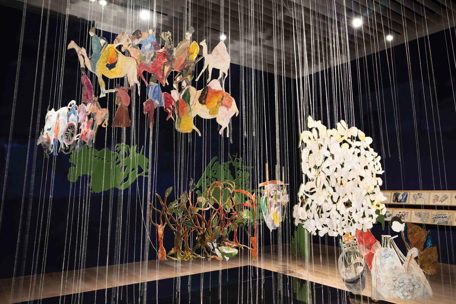 Anna Boghiguian's The Silk Road (2021). Installation view of Another Energy: Power to Continue Challenging—16 Women Artists from around the World at the Mori Art Museum, Tokyo