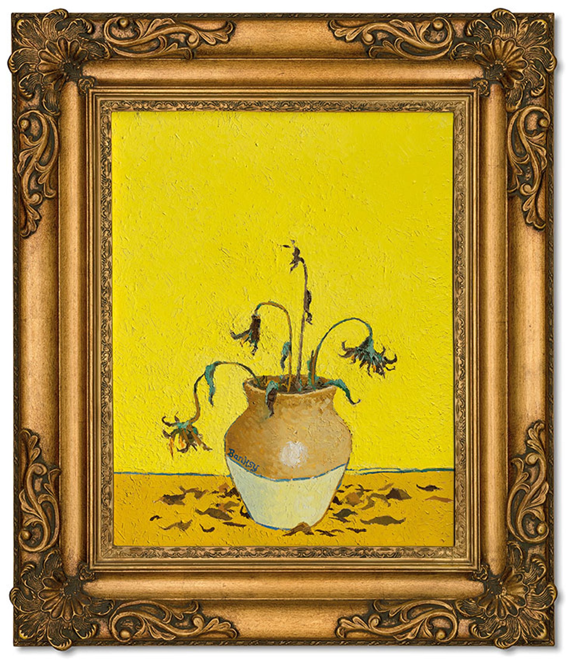 Banksy’s ode to Van Gogh Sunflowers from Petrol Station (2005) sold for $14.5m with fees) © Christie's