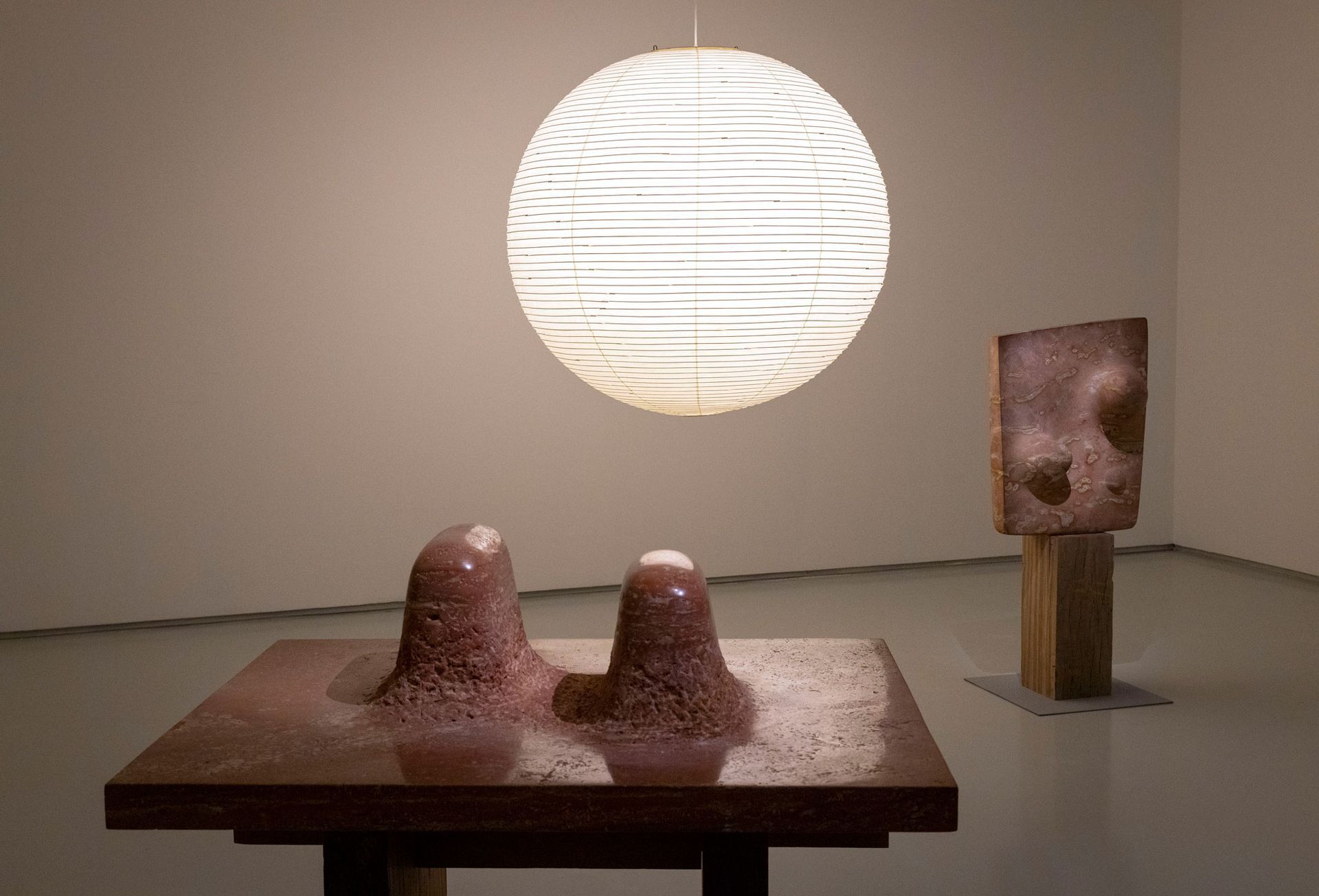 One of the more subtly lit galleries at the Barbican Art Gallery, showing Noguchi's Double Red Mountain (1969) and Time Lock (1944-45) sculptures© Tim Whitby / Getty Images