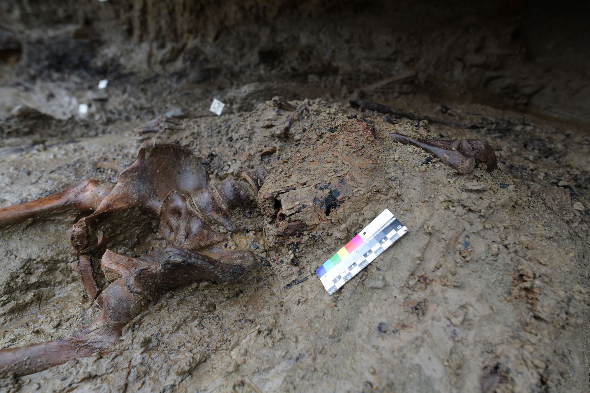 The skeleton was found with a cloth shoulder bag containing a wooden box and various other materials that will be subject to further analysis in the laboratory © Parco Archeologico di Ercolano