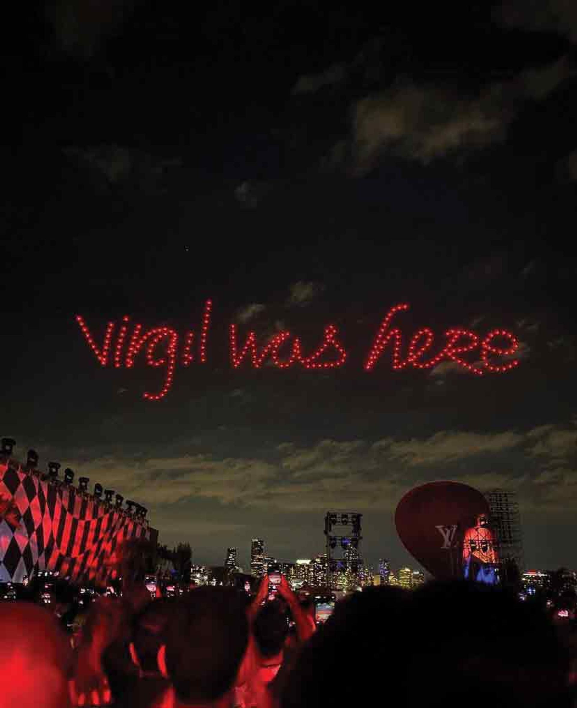 Drones spell out a tribute to Abloh at the Louis Vuitton fashion show Photo: via Twitter