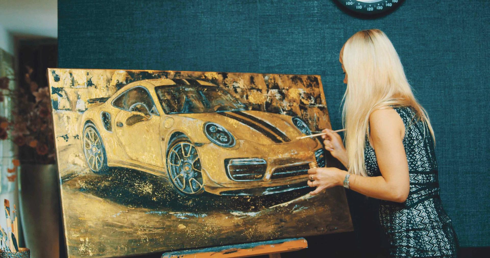 Stadnic applies a custom paint job to her portrait of a Porsche 911 Photo: courtesy Tanja Stadnic
