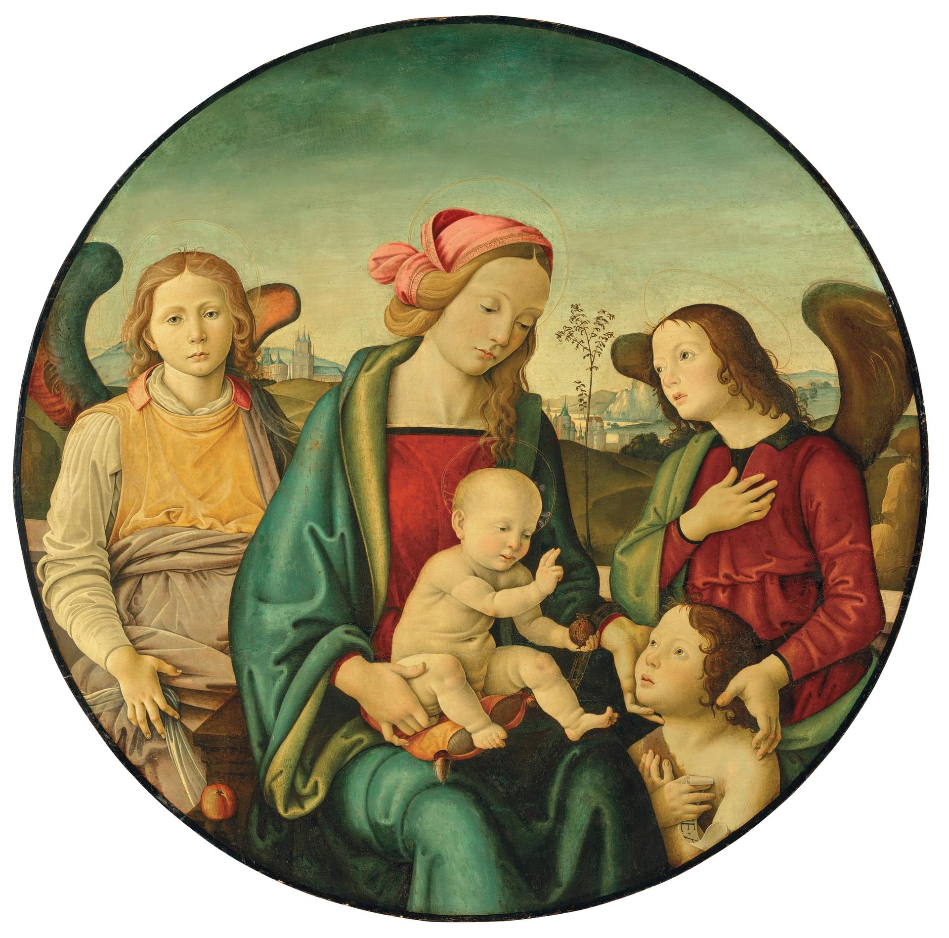 Florentine school tondo of the Madonna and Child with the Infant Saint John and two Angels