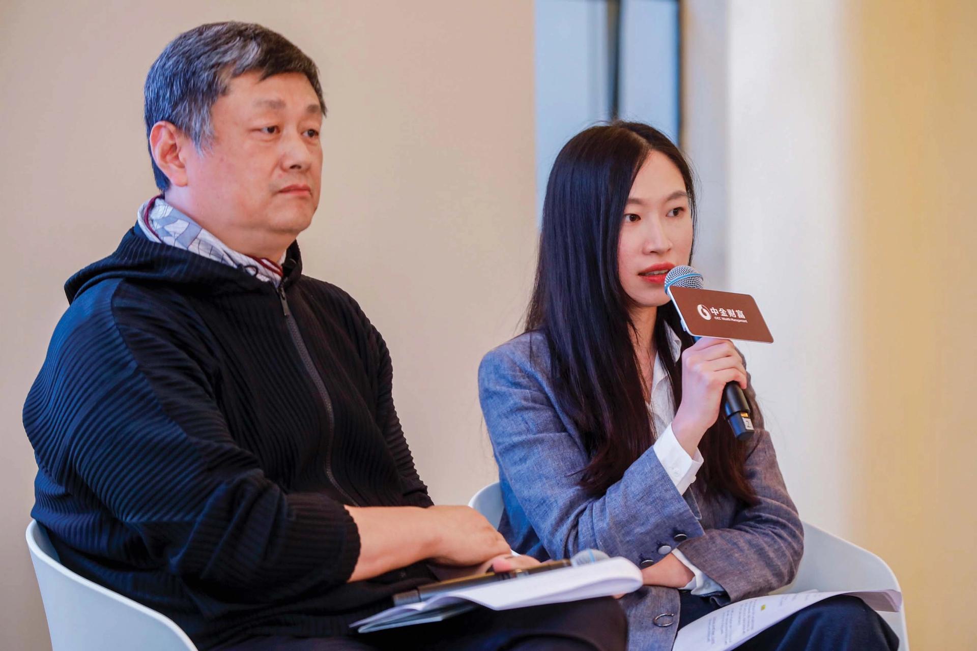 Shana Wu and Zhao Li, a professor at the Central Academy of Fine Arts, presenting the report at West Bund in Shanghai