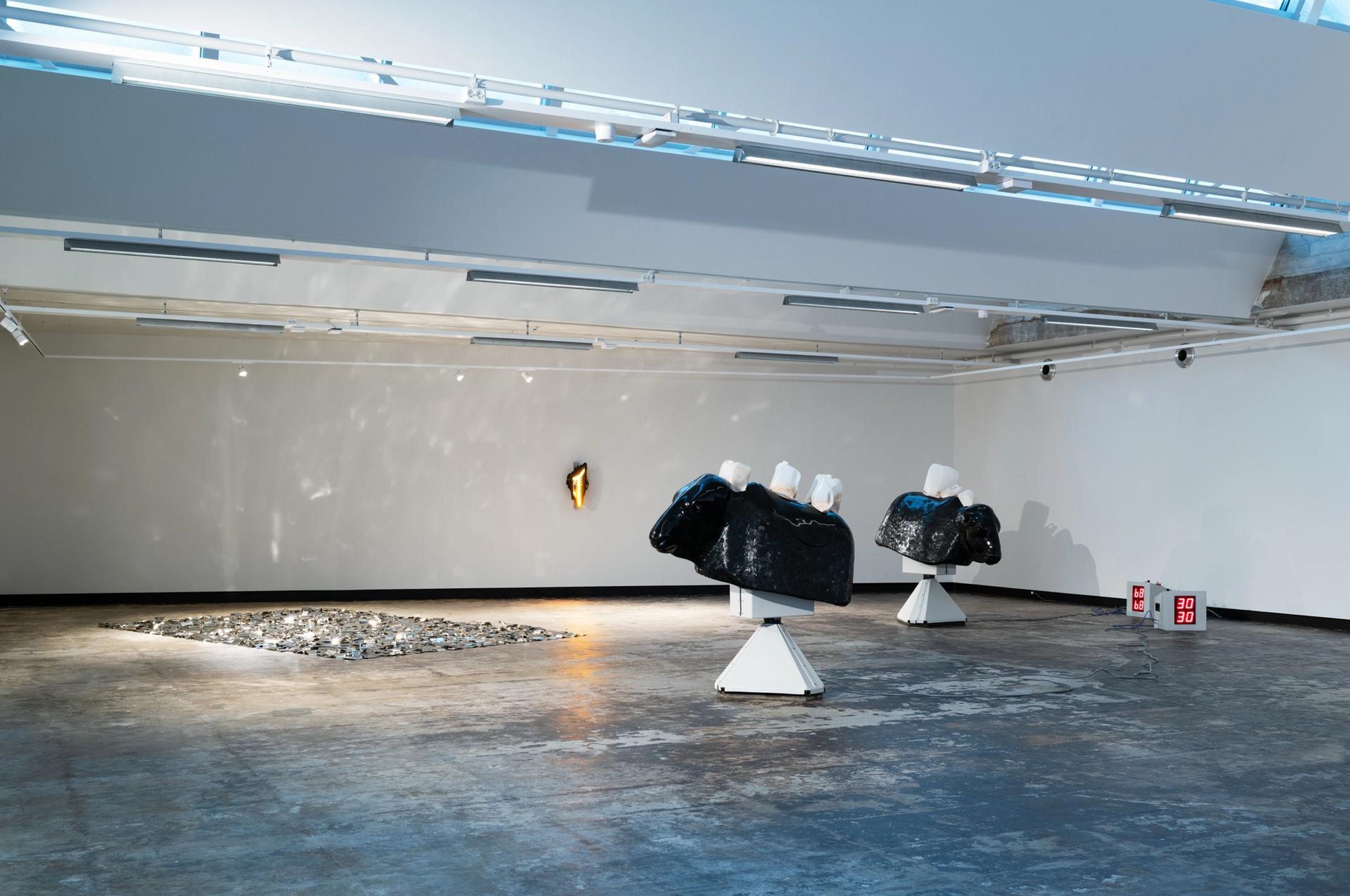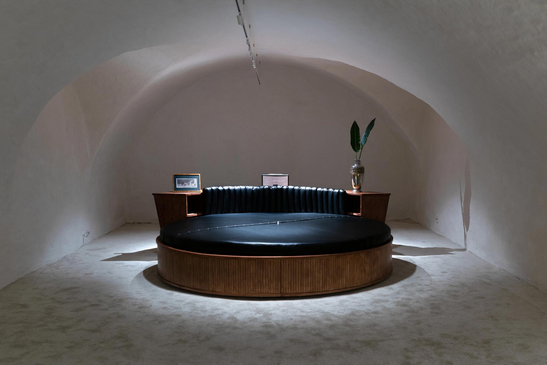 For the inaugural show, the KUK has provided each of the participating artists with an undisclosed exhibiting fee, completely separate to the sales made, for which it takes a 40% commission. It also provides production fees for specially commissioned works such as an installation by the Egyptian-born Mahmoud Khaled, who has converted a basement gallery into a white carpeted den with a 1960s, Hugh Hefner-style leather bed.