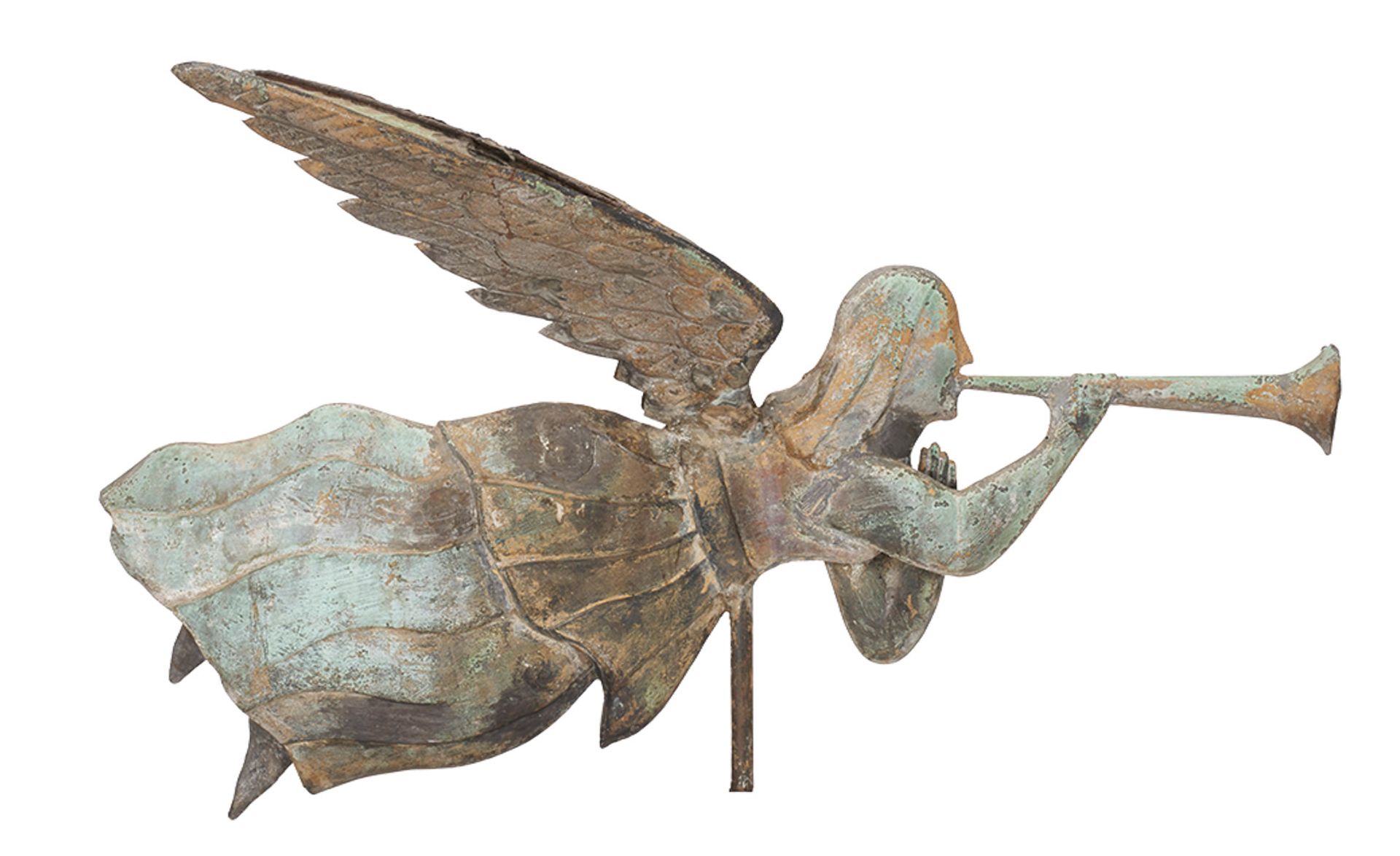 Moulded copper flying Angel Gabriel weathervane, attributed to J.W. Fiske (around 1890) Courtesy of Christie’s