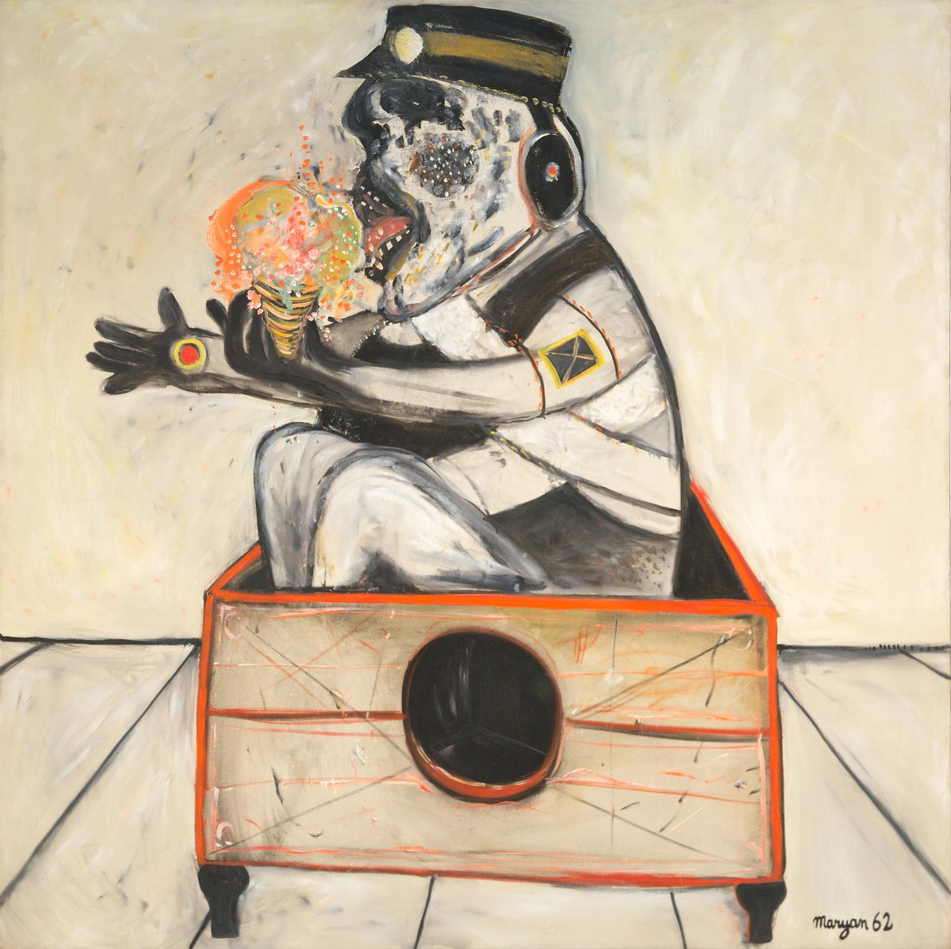 The contents of the notebooks were ”the story of my life”, the artist said—the therapist encouraged Maryan to pictorially exorcise the experiences of his childhood.