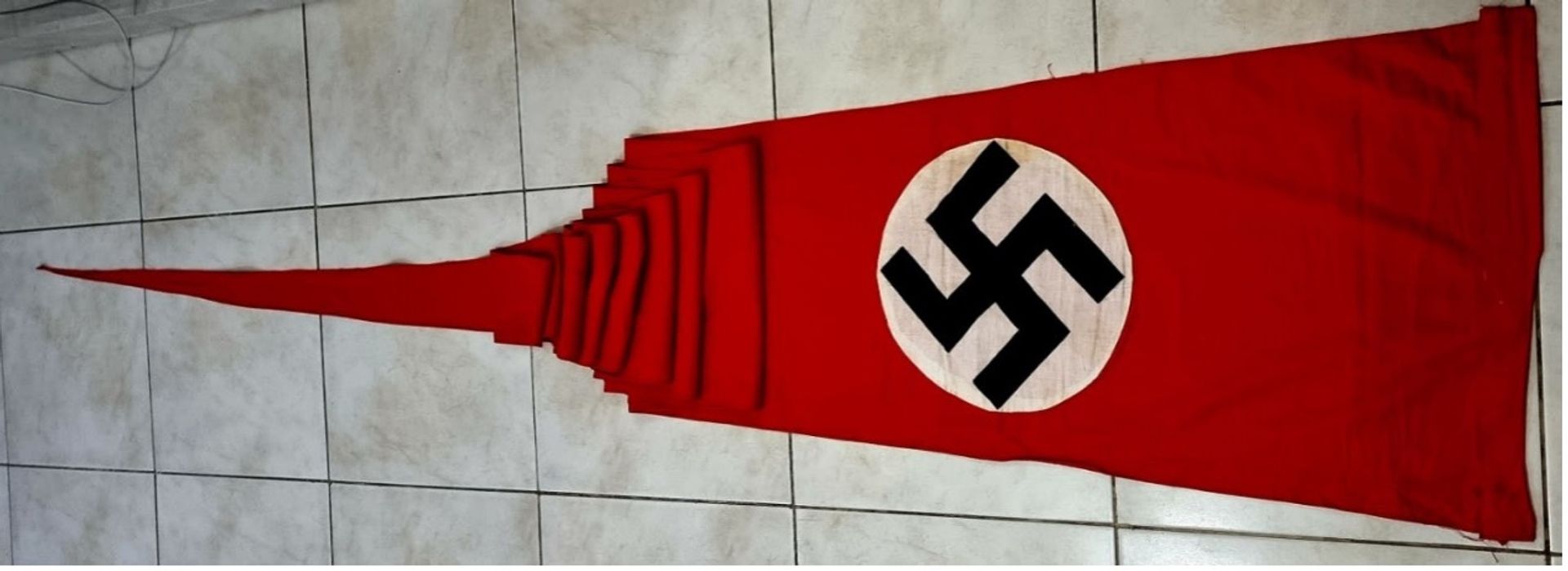 A Nazi Party flag up for sale on Pentagon Auctions. The sale page states that it was "hung on official Nazi buildings”. Starting price $500. Courtesy of Pentagon Auctions