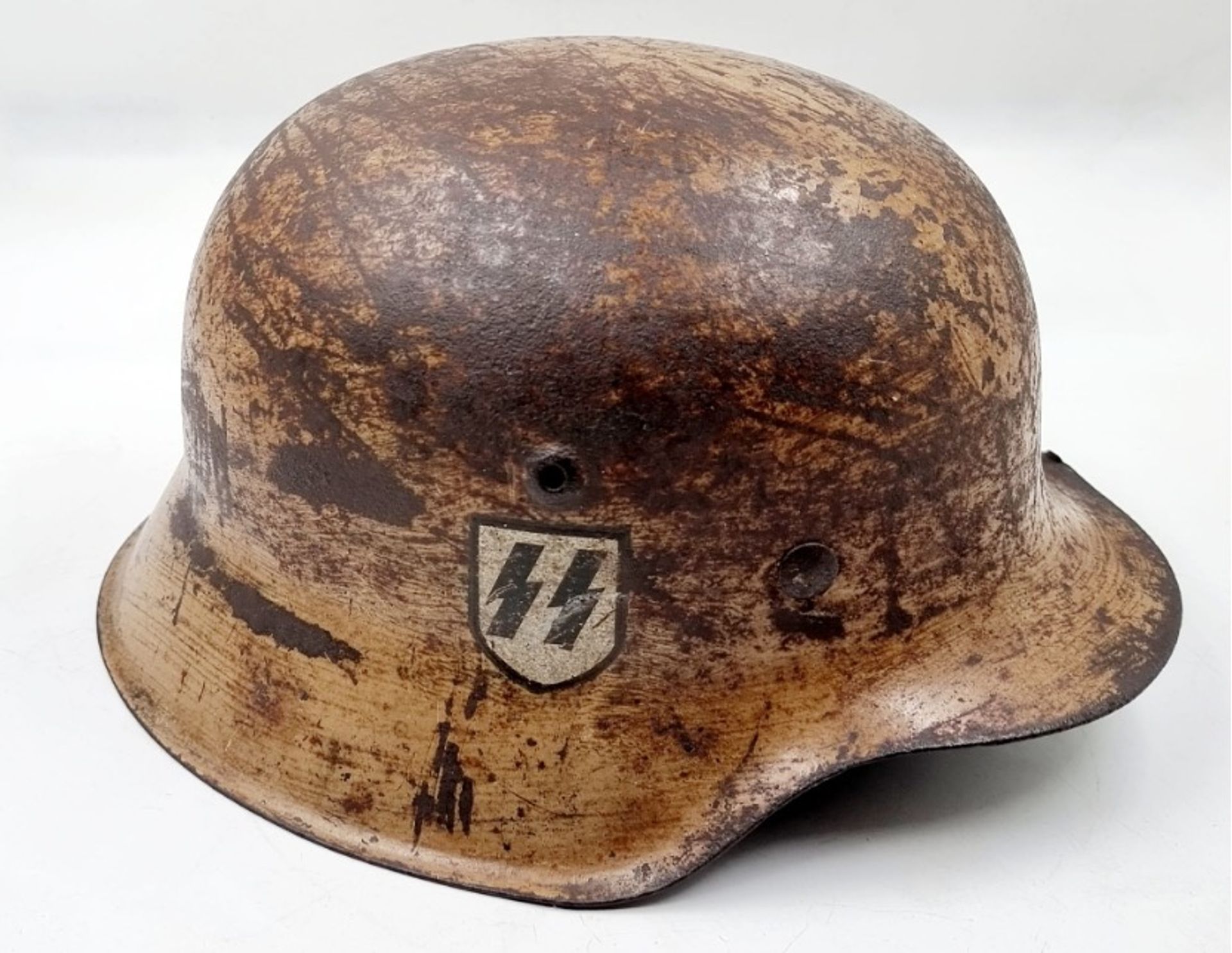 "The helmet of an SS soldier from the Second World War—very rare!" Starting price $1,000. Courtesy of Pentagon Auctions